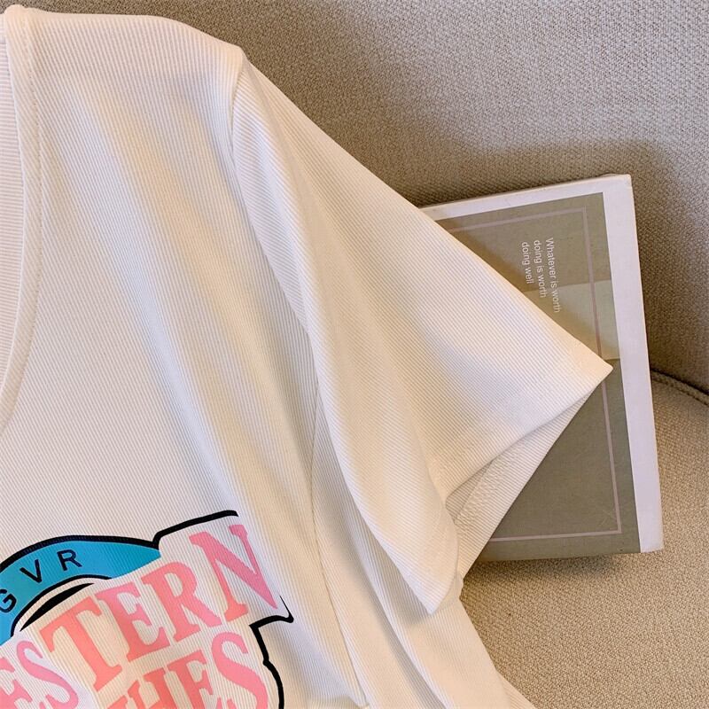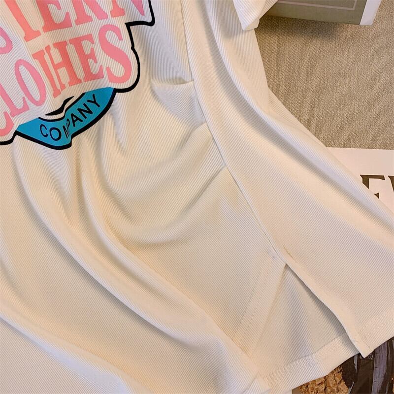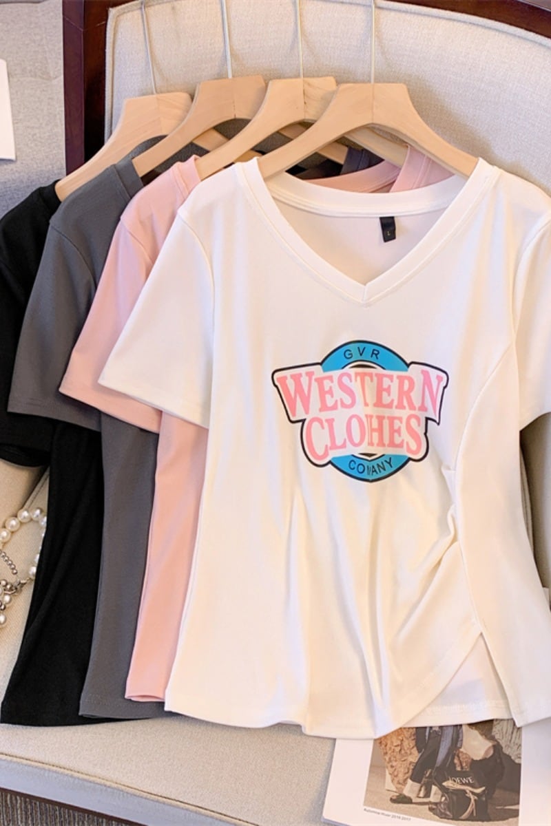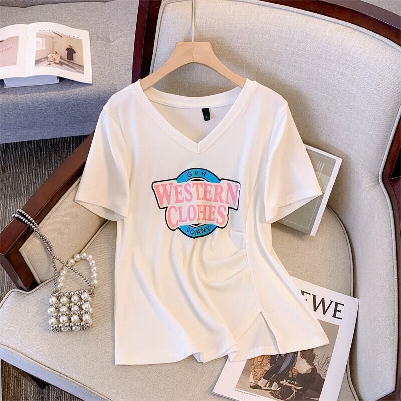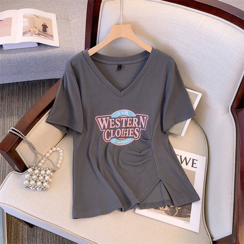 プラスサイズの婦人服 2023 夏服ファットシスター V ネック年齢軽減カジュアル痩身 Tシャツニッチカバー腹ルーズファッショントップ 大きめサイズ サマー 夏物 Vネック 8884150518091347