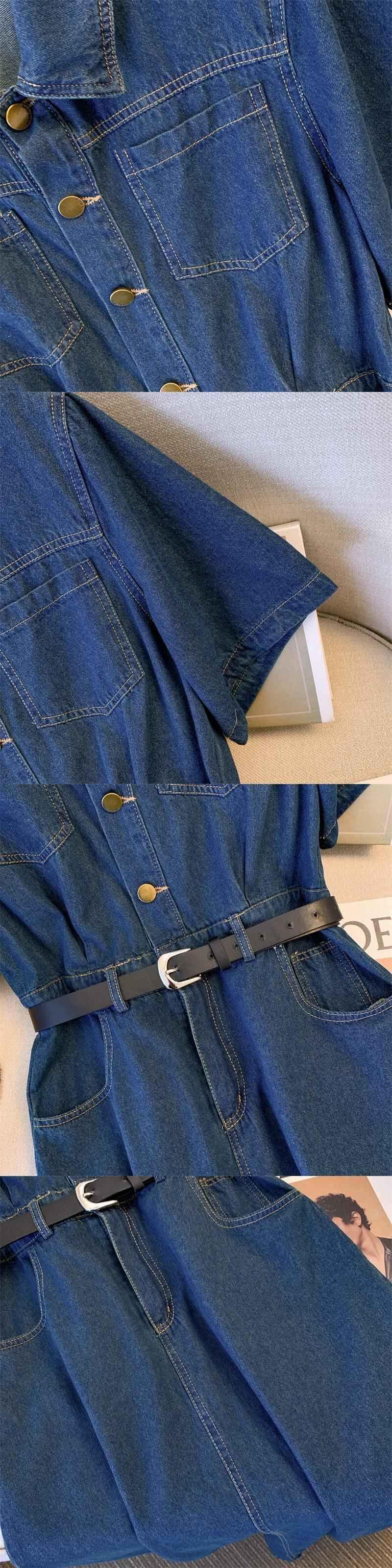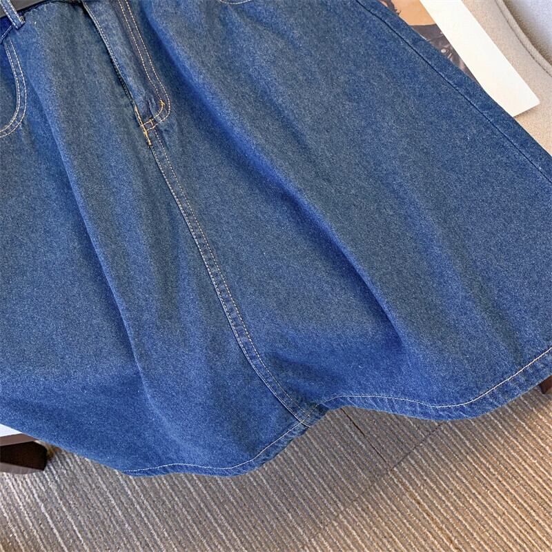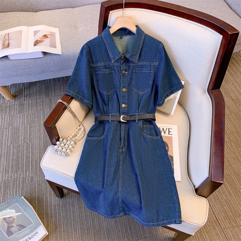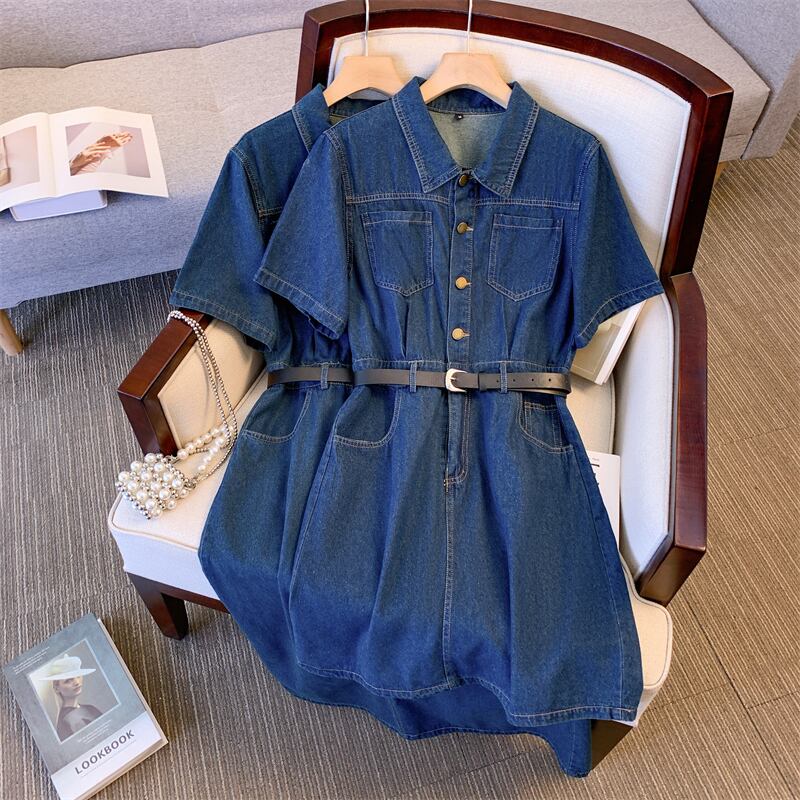 プラスサイズの婦人服 2023 脂肪姉妹夏の新しいファッションラペルロングとショートニッチデニムスカート半袖ドレス 大きめサイズ サマー 夏物 8884180344517396