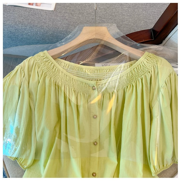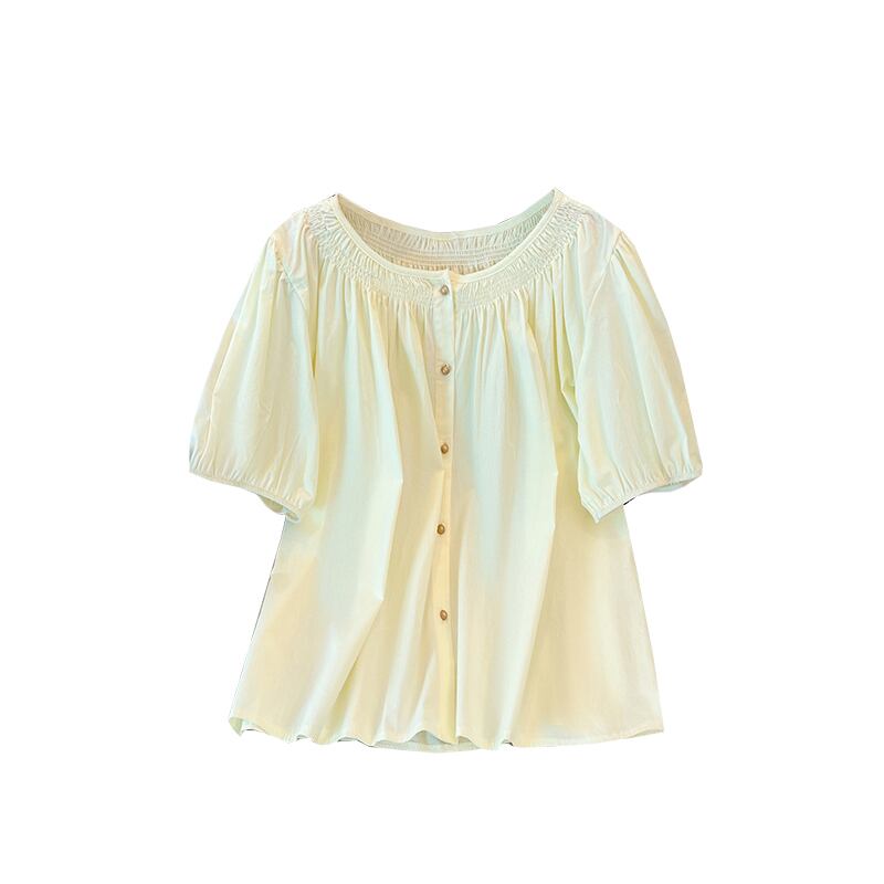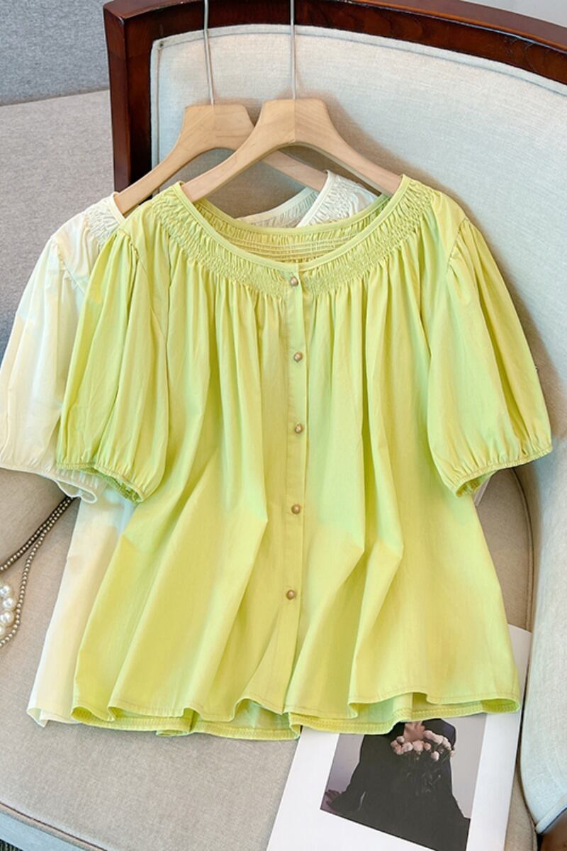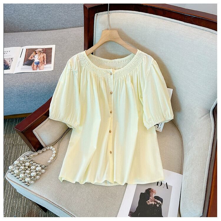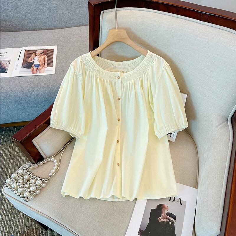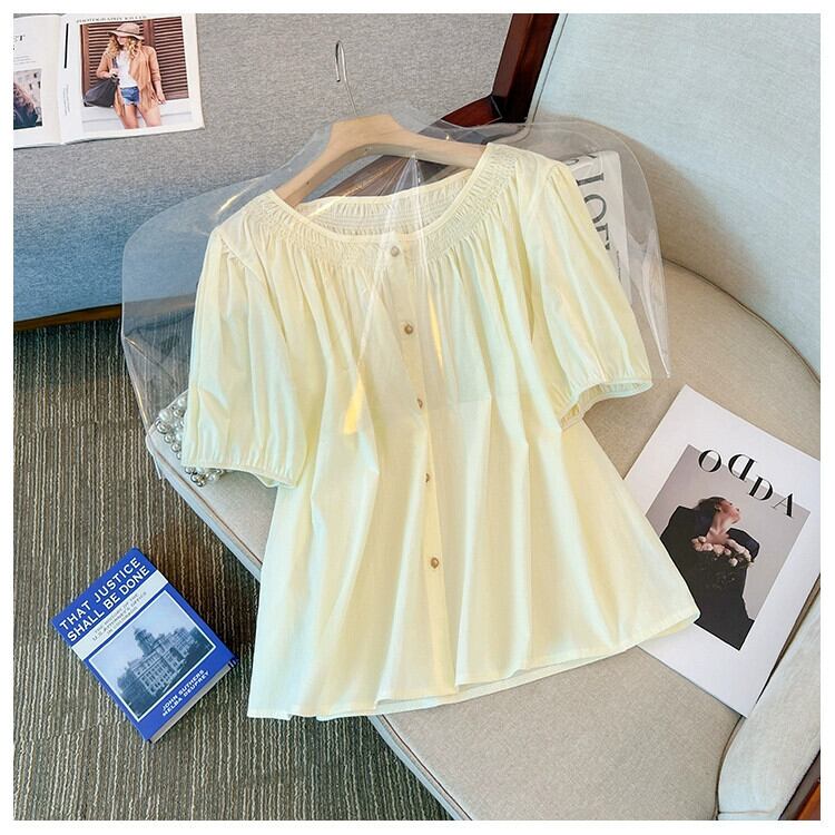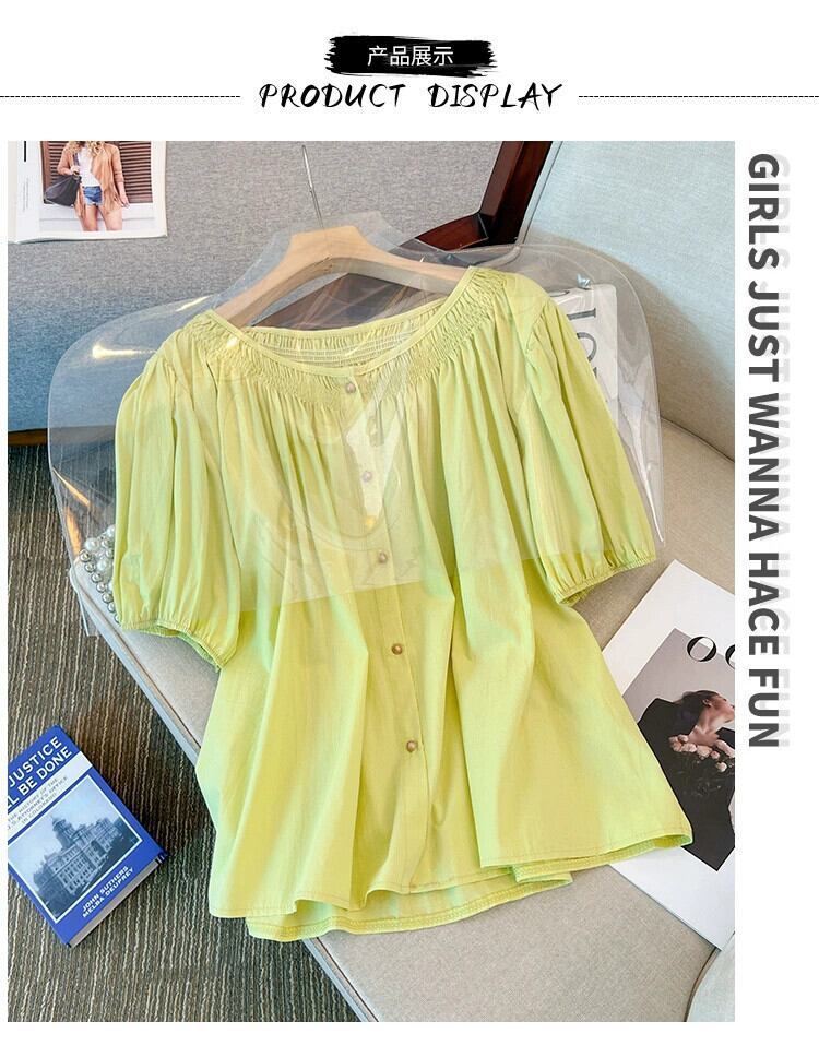 プラスサイズの婦人服 2023 夏服ファットシスター半袖デザイン感お腹カバーシフォンシャツフレンチパフスリーブ気質トップ 大きめサイズ サマー 夏物 8884150119782039