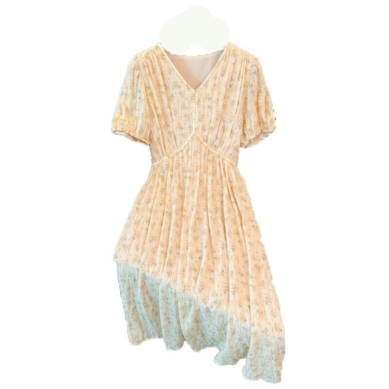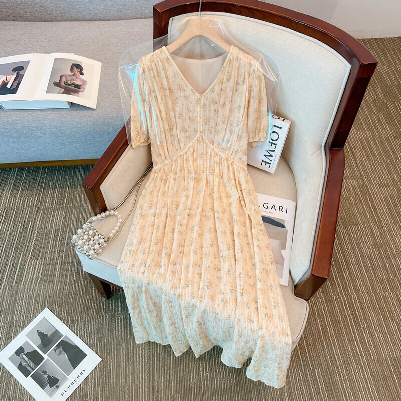 プラスサイズの婦人服 2023 脂肪姉妹夏の新しいデザインセンス腹カバーロングスカート気質スリム V ネック花柄ドレス 大きめサイズ サマー 夏物 Vネック 8884144920620390