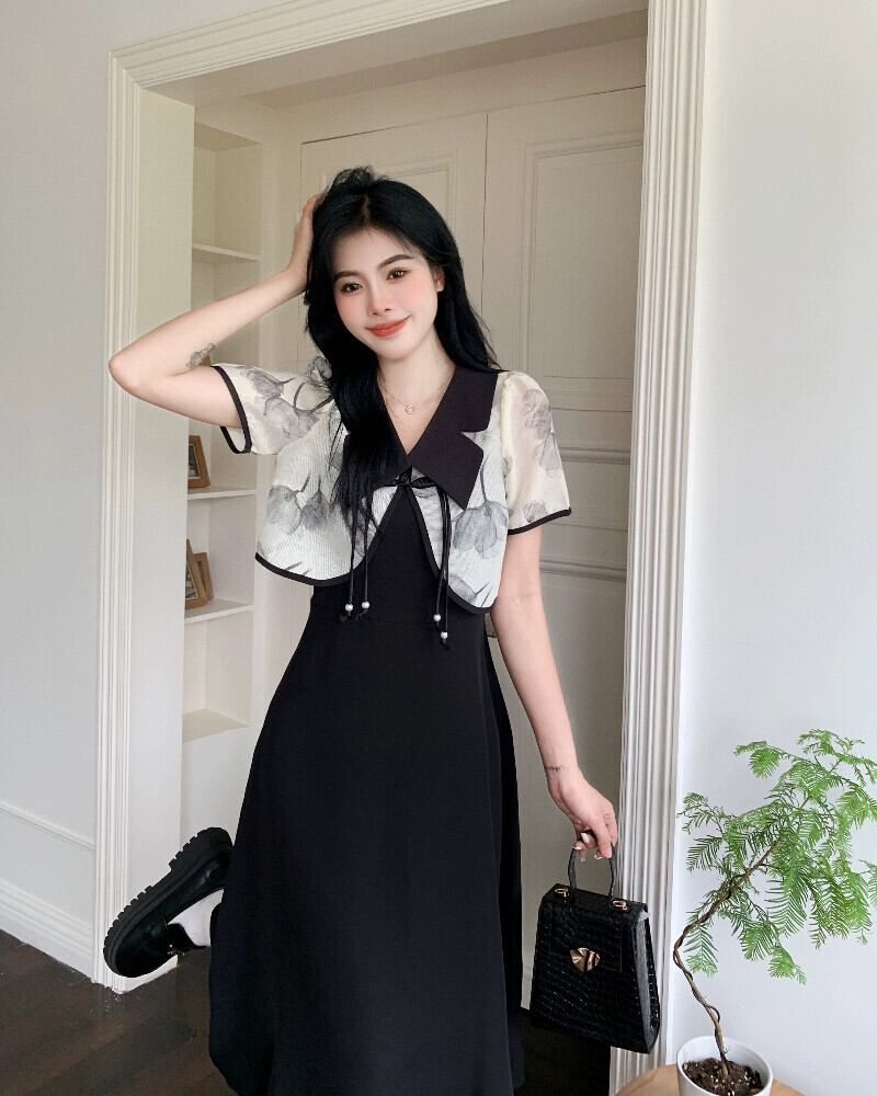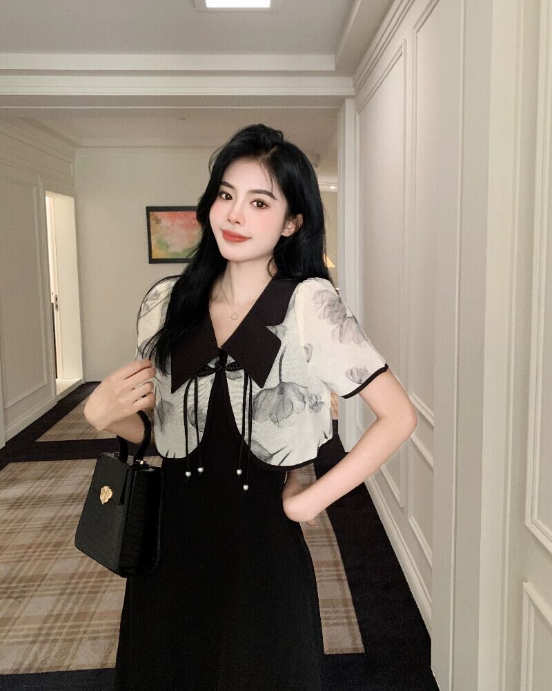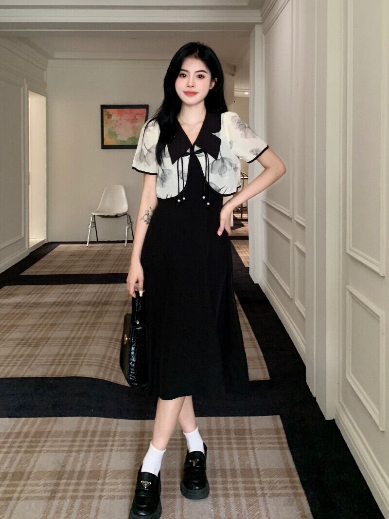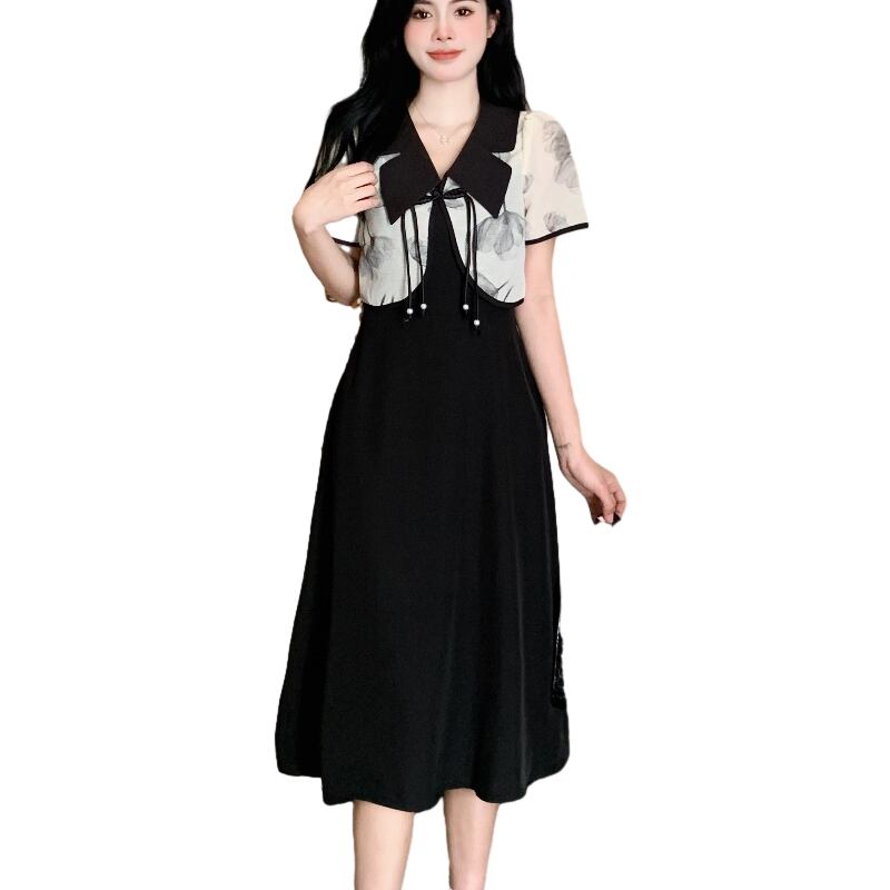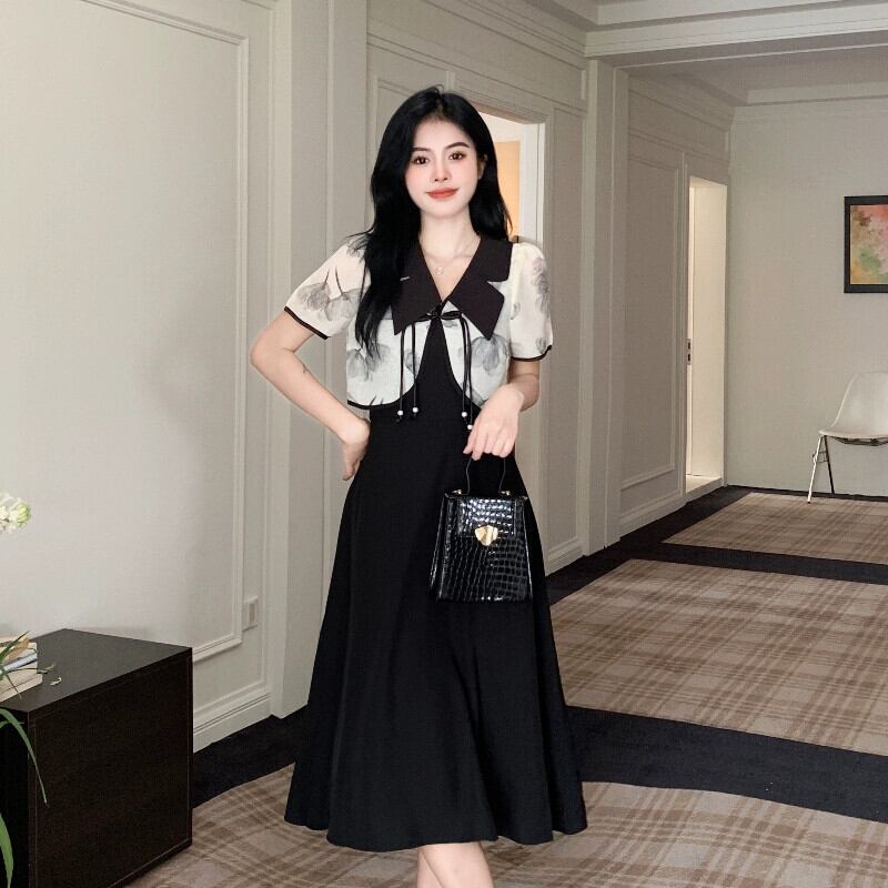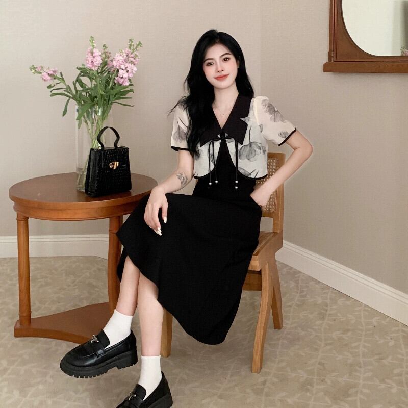 プラスサイズの婦人服 2023 潮夏新しい脂肪姉妹中国風のスーツチャイナ シャツ サスペンダー ドレス 2 点セット 大きめサイズ サマー 夏物 8884131093382870