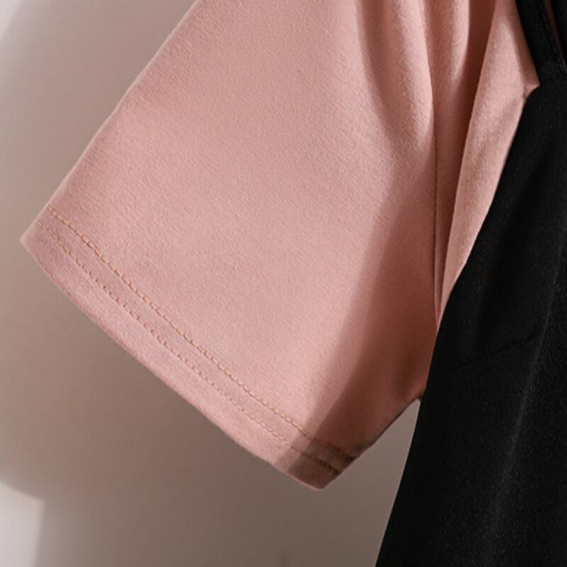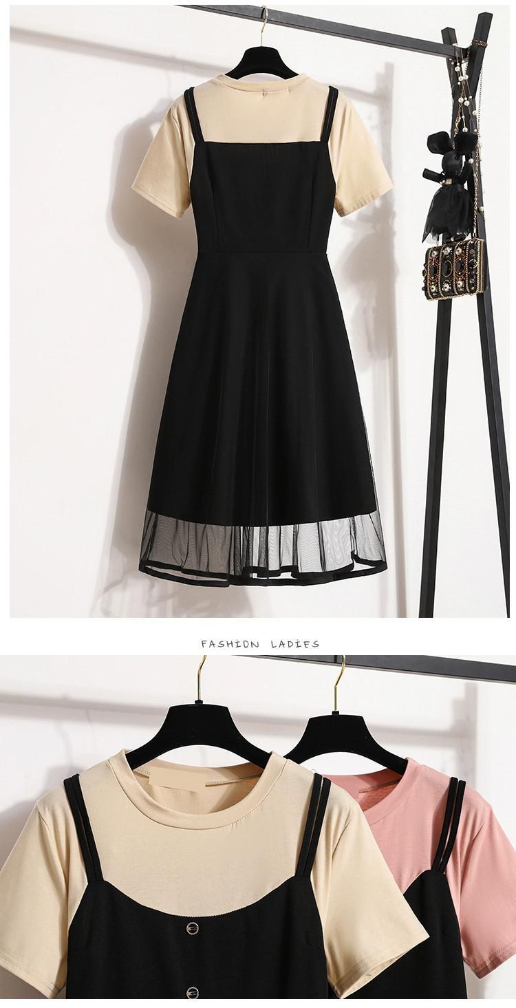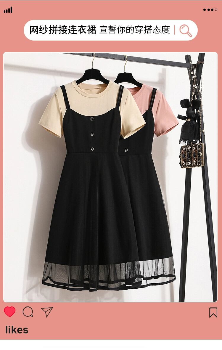 プラスサイズの婦人服 2023 夏服脂肪姉妹スプライシング偽ツーピースドレスカバー腹カジュアルニッチシックなメッシュスカート 大きめサイズ サマー 夏物 8884158502352666
