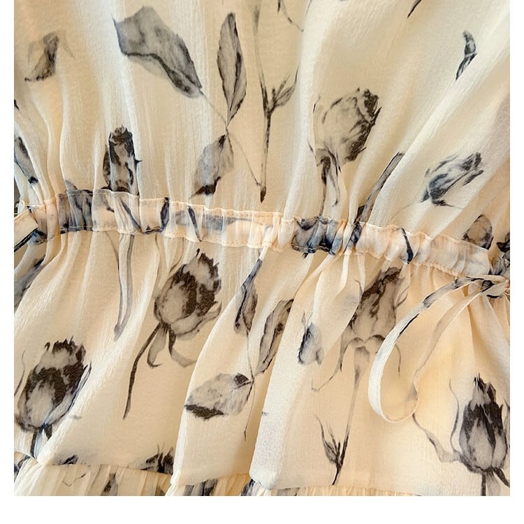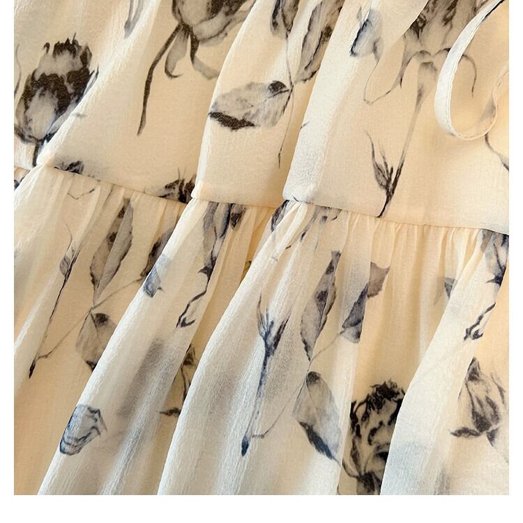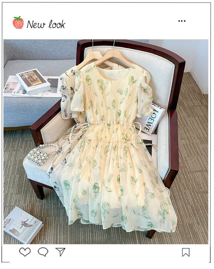 プラスサイズの婦人服 2023 脂肪姉妹夏の新パフスリーブシフォンロングスカートハイウエストスリムネクタイネクタイレトロドレス ハイウェスト 大きめサイズ サマー 夏物 8884152874558483