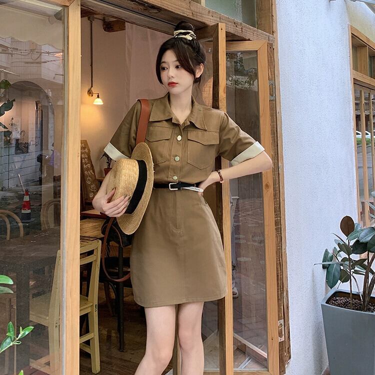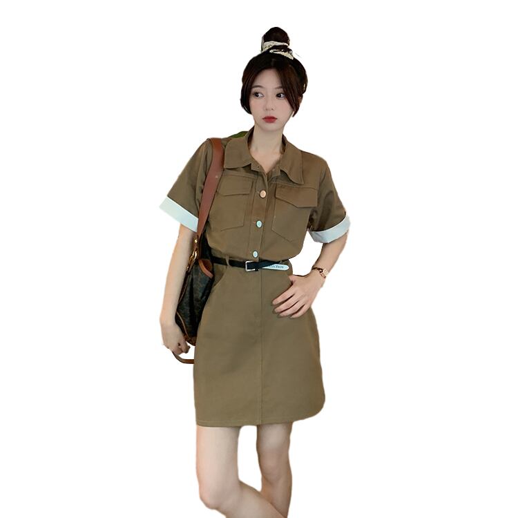プラスサイズの婦人服 2023 脂肪姉妹夏の新スタイルブラウンロングとショートスタイル薄いオーバーオールドレス隠し肉薄いドレス 大きめサイズ サマー 夏物 8884144142400843