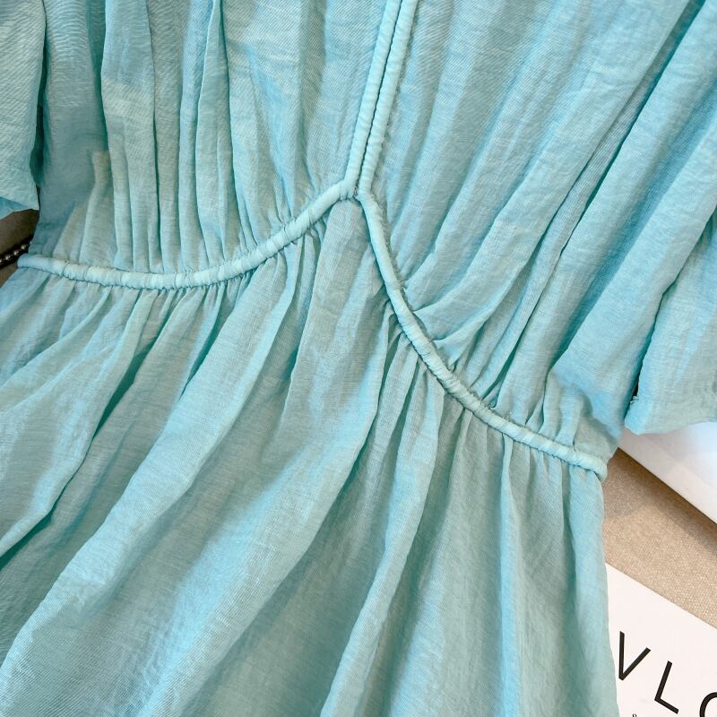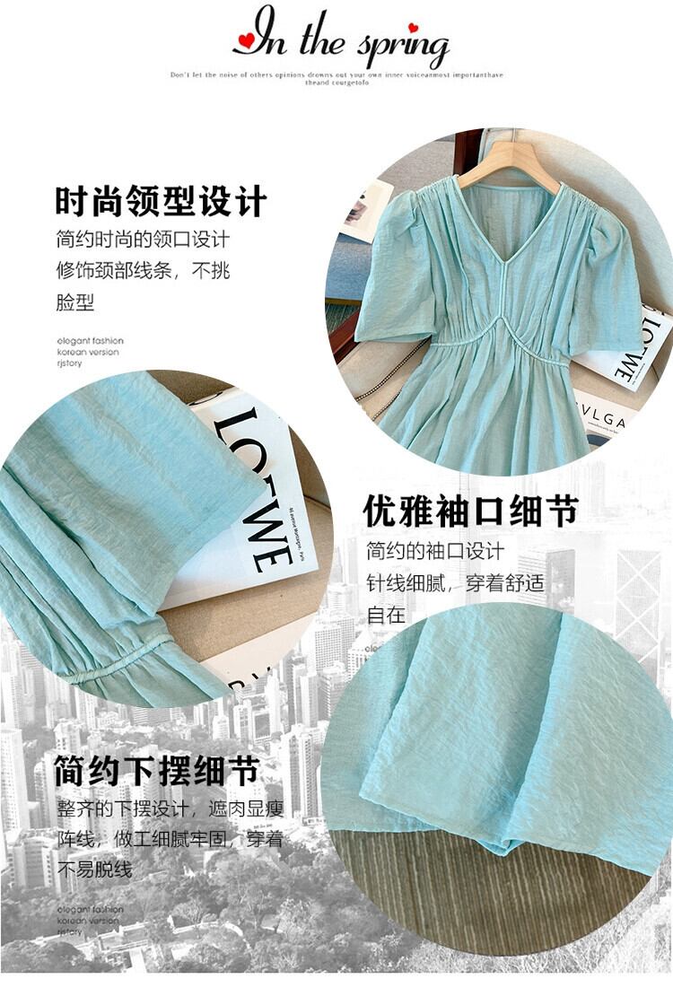 プラスサイズの婦人服 2023 ファットシスター夏新フレンチデザインの年齢感軽減お腹カバー気質ロングスカート V ネックドレス 大きめサイズ サマー 夏物 Vネック 8884134137533409