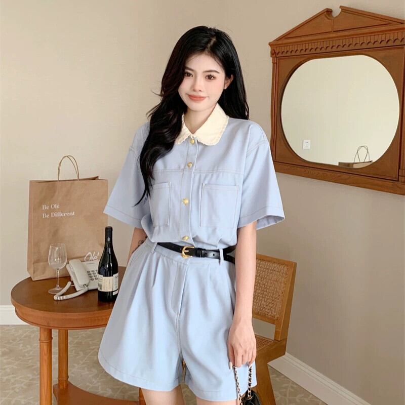プラスサイズの婦人服 2023 流行の夏の新しいファットシスターベルトツーリングワンピースショーツスリムフレンチハイエンドパンツ 大きめサイズ サマー 夏物 ハーネス ブルマー 8884176203929142