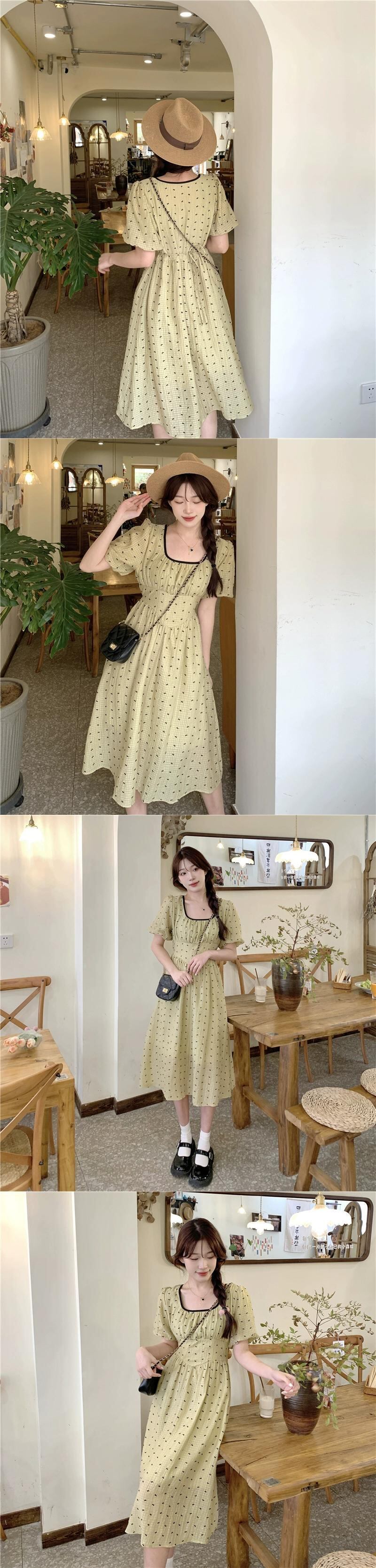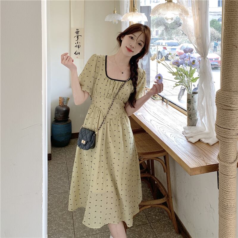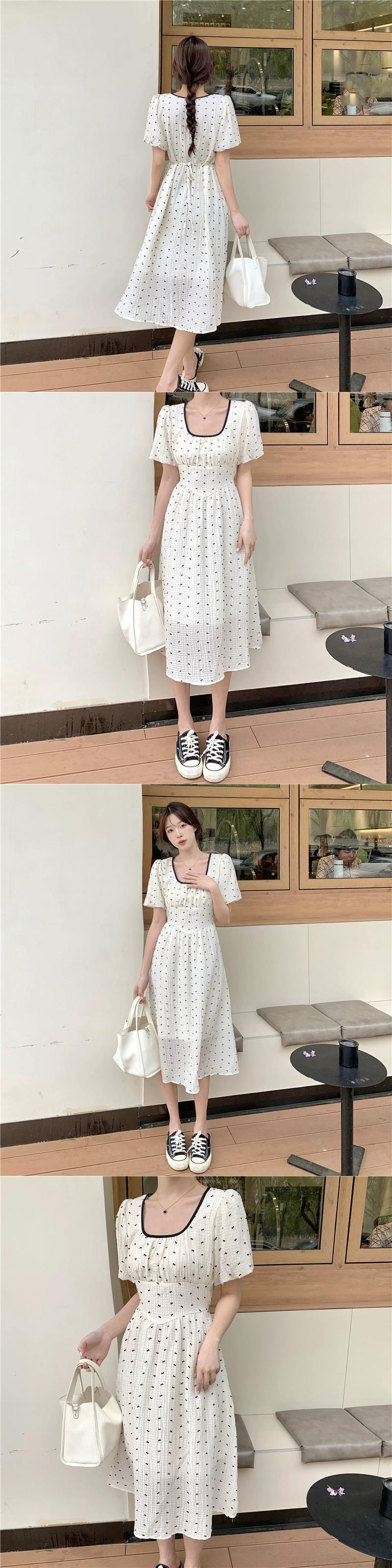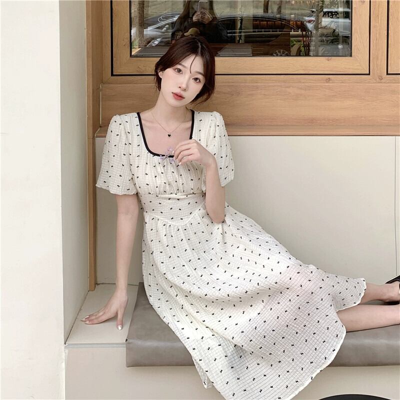 プラスサイズの婦人服 2023 脂肪姉妹夏の新バージョンスクエアカラーちょう結びロングスカートプリントスリム気質ドレス リボン 大きめサイズ サマー 夏物 スクウェア 8884132895024155