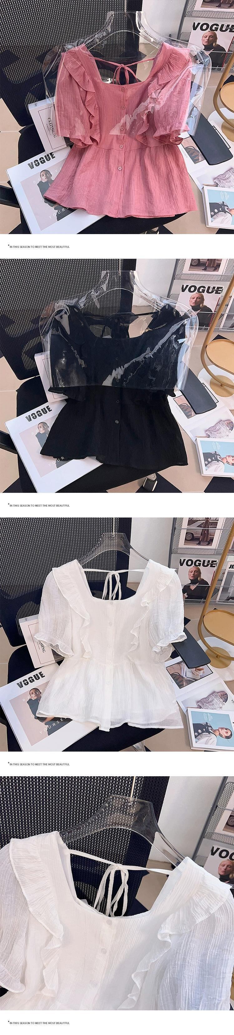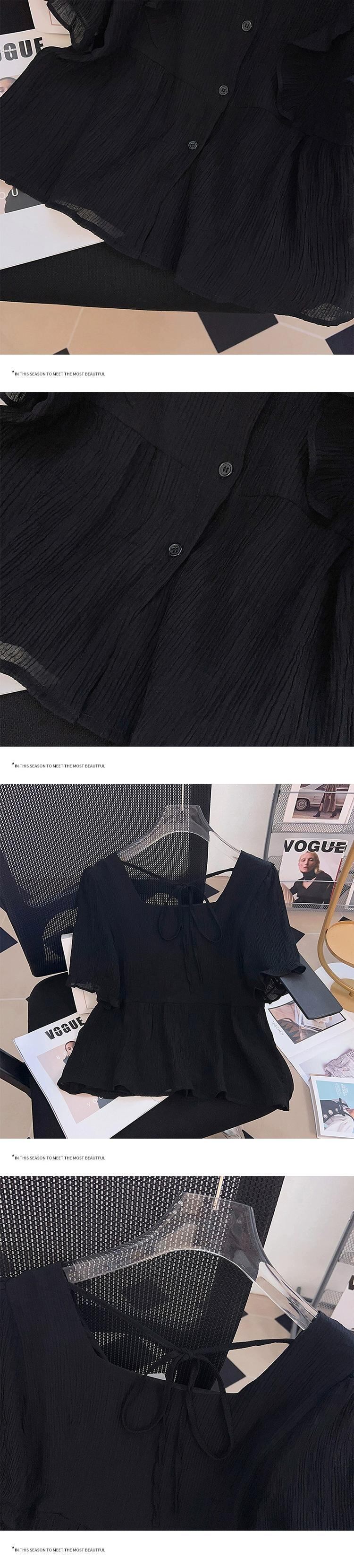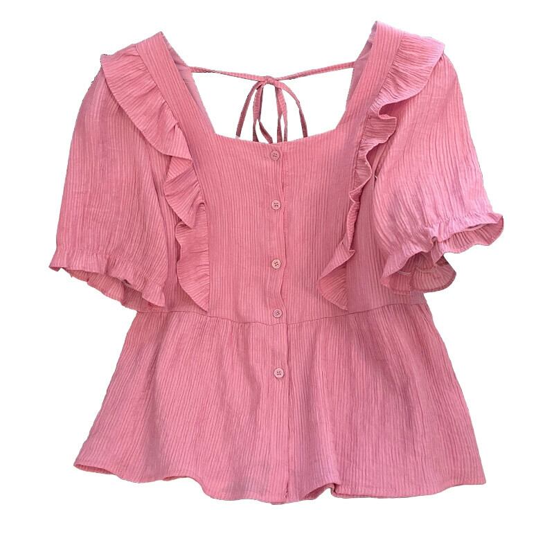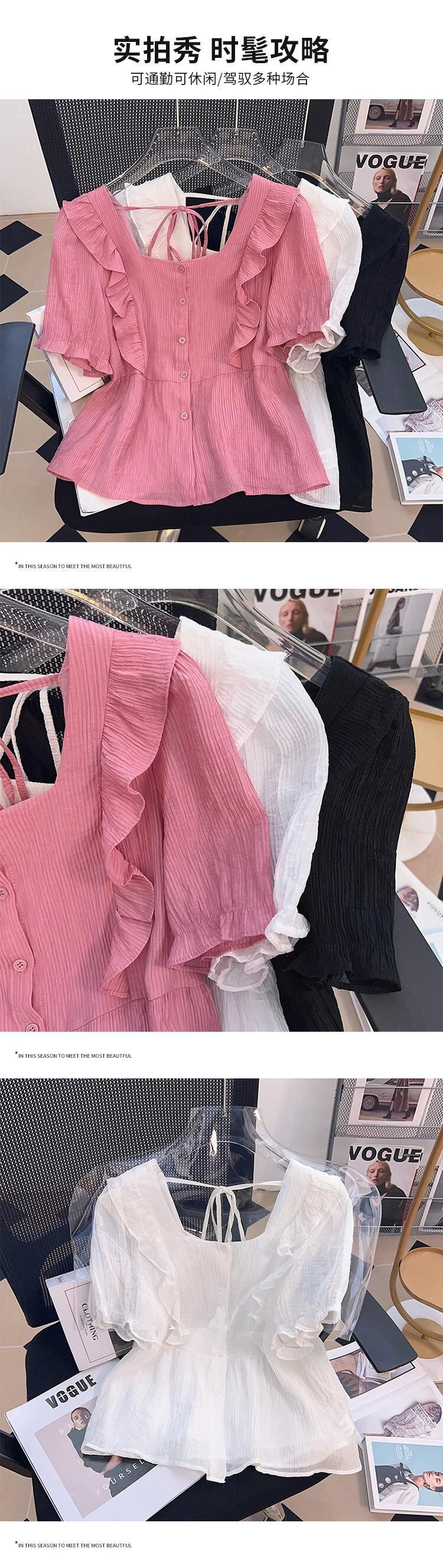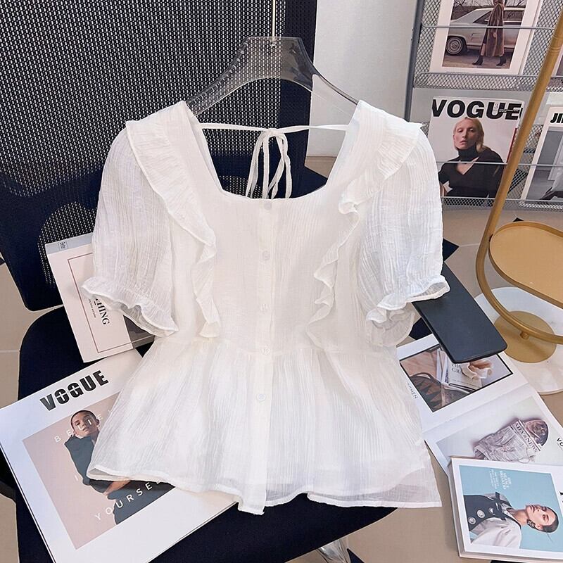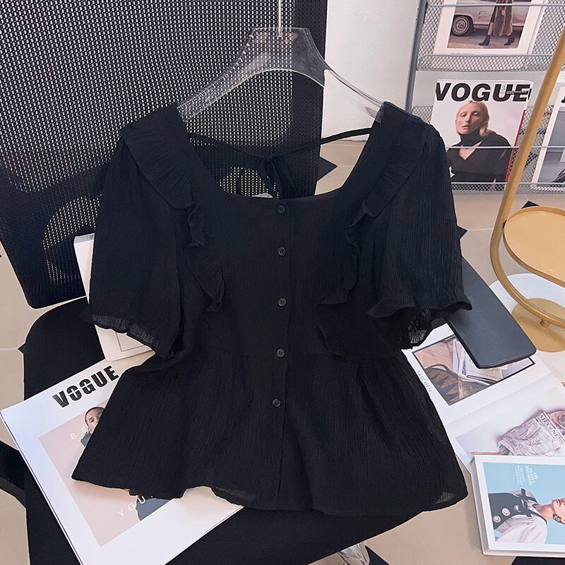 プラスサイズの婦人服ファットシスター夏の新しいファッションオールマッチ年齢軽減木耳サイドカラートップシャツフレンチシャツ 大きめサイズ サマー 夏物 8884196319309414