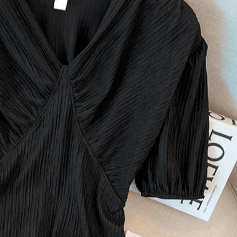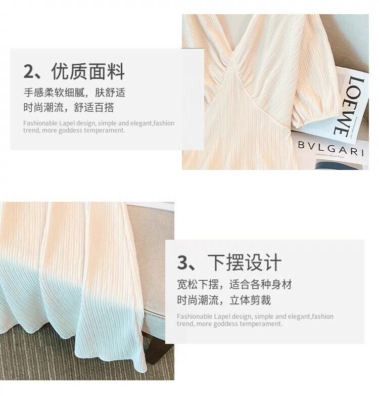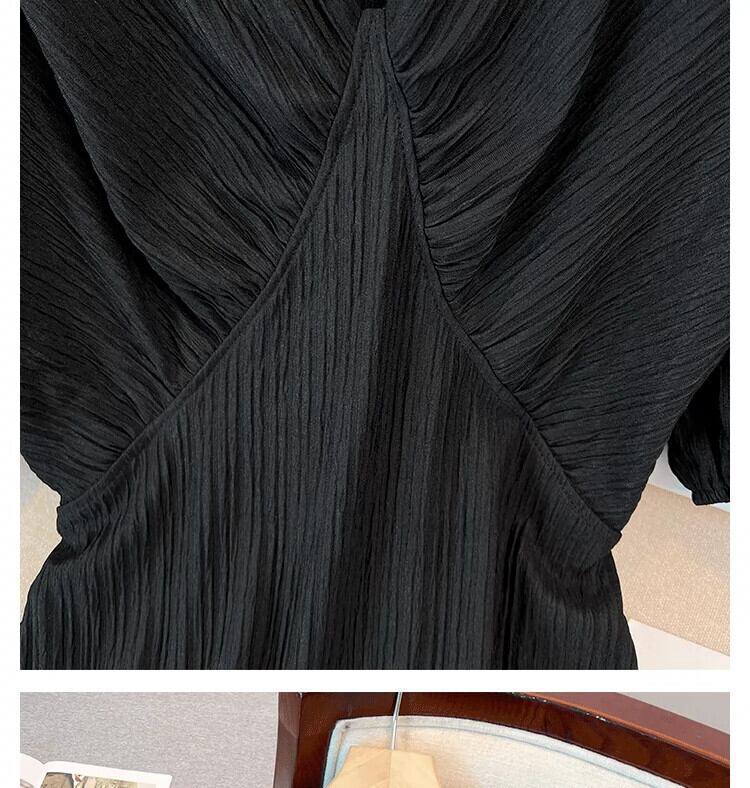 プラスサイズの婦人服 2023 夏服ファットシスターファッション薄いフレンチミッドレングススカートデザインセンス V ネック年齢軽減ドレス 大きめサイズ サマー 夏物 Vネック 8884141873188189