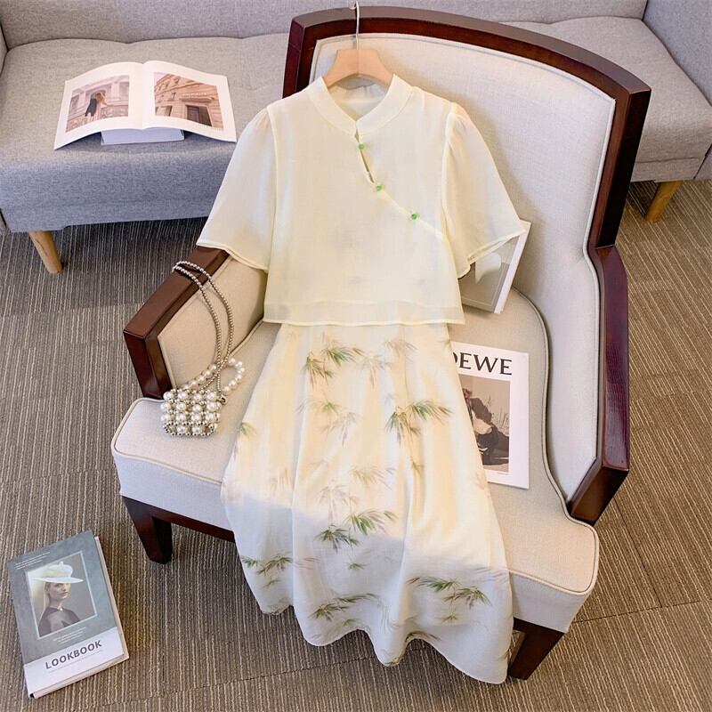 プラスサイズの婦人服 2023 夏服ファットシスターシックカジュアル年齢軽減トップスデザインセンスサスペンダードレス 2 点セット 大きめサイズ サマー 夏物 8884159445754699