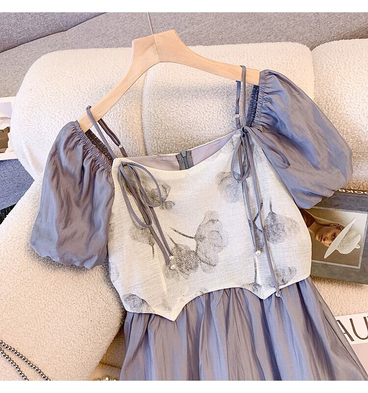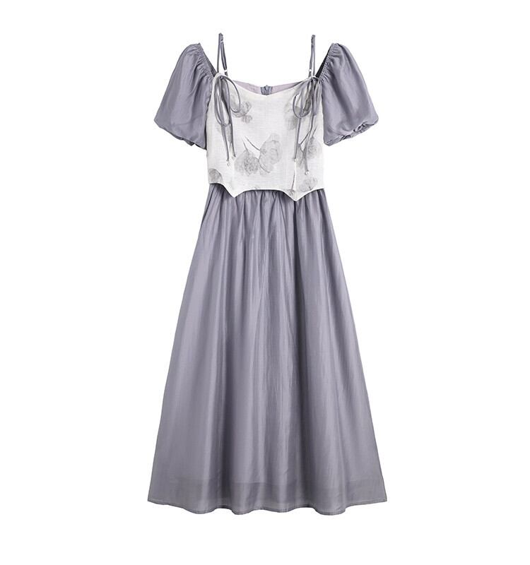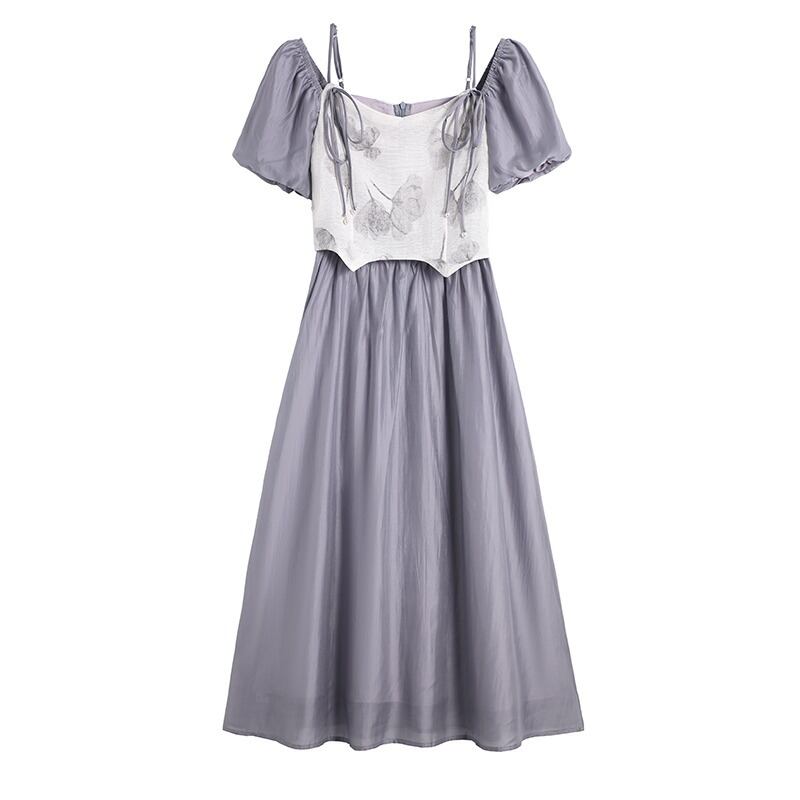 プラスサイズの婦人服 2023 流行の夏の新しい脂肪姉妹中国風中国風のスカート偽二枚スリムドレス 大きめサイズ サマー 夏物 8884153211754426