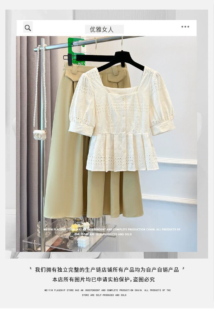 プラスサイズの婦人服 2023 流行の夏の新しいファットシスターハイエンドスーツシックなオールマッチトップスカート 2 点セット 大きめサイズ サマー 夏物 8884132494658331