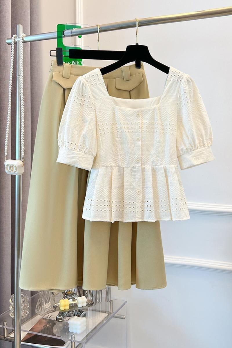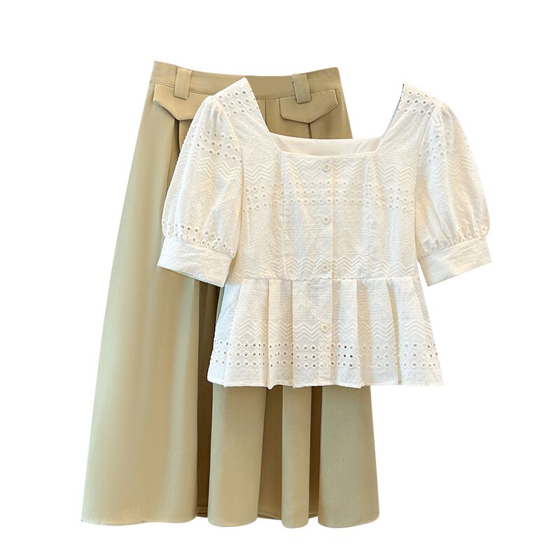 色:シングルホワイトトップ,アプリコットスカート,ホワイトトップ+アプリコットスカート