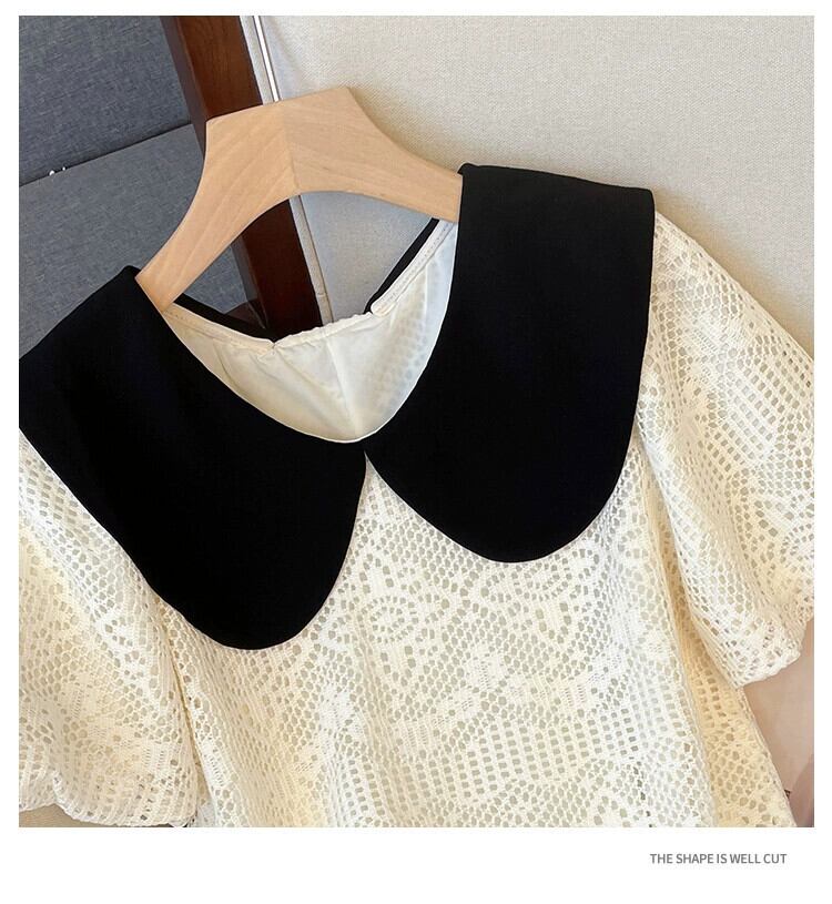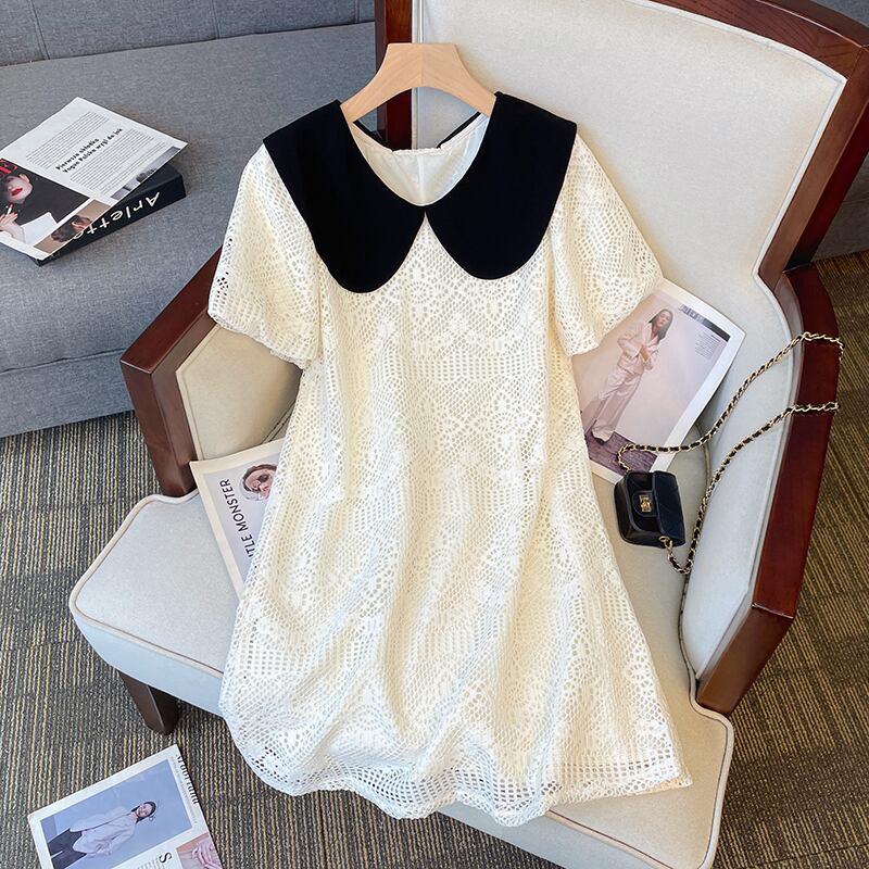 プラスサイズの婦人服 2023 夏服脂肪姉妹人形襟パフスリーブ A ラインスカートルーズ年齢軽減デザインセンスドレス 大きめサイズ サマー 夏物 Aライン 8884136616511164