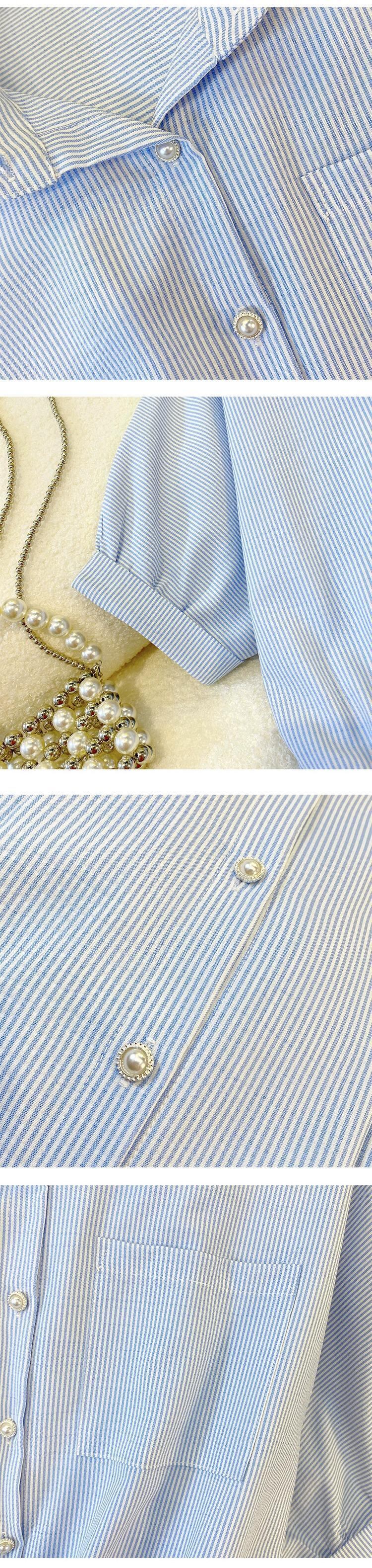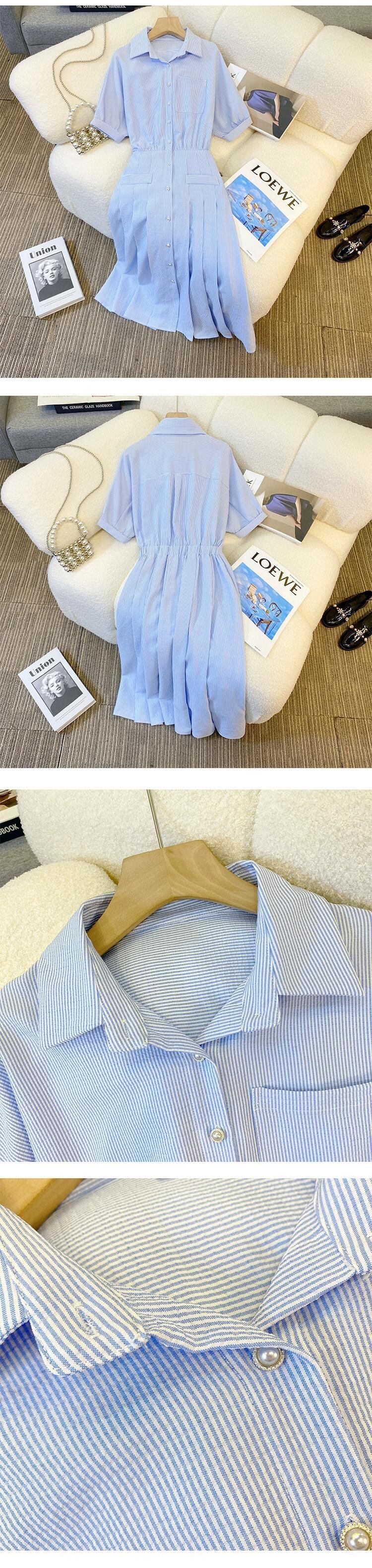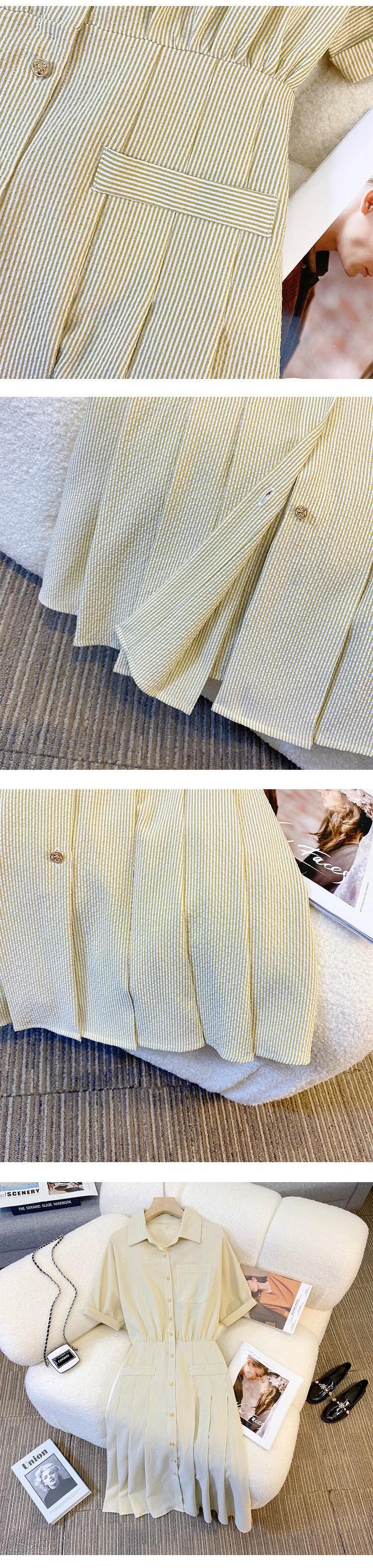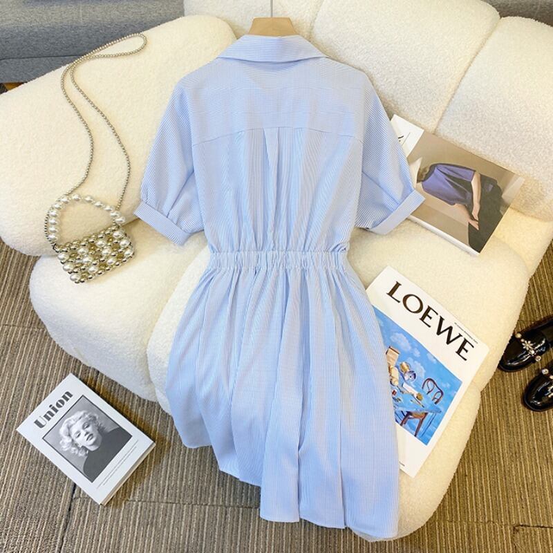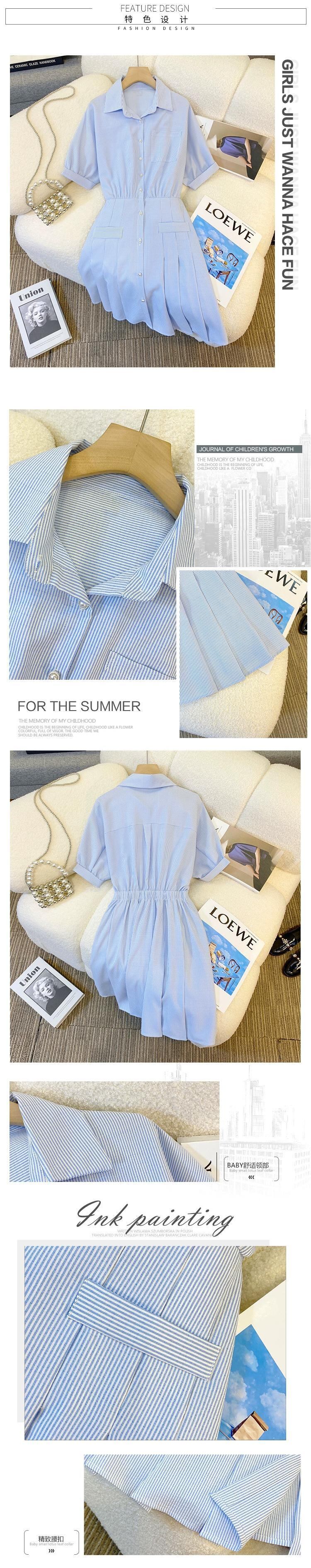 プラスサイズの婦人服 2023 流行の夏の新しいファットシスターストライプシャツスカートスリムカジュアルポロカラー半袖ドレス 大きめサイズ サマー 夏物 8884176933632570