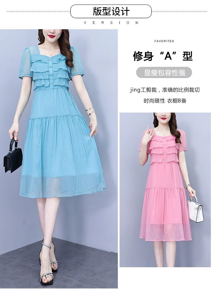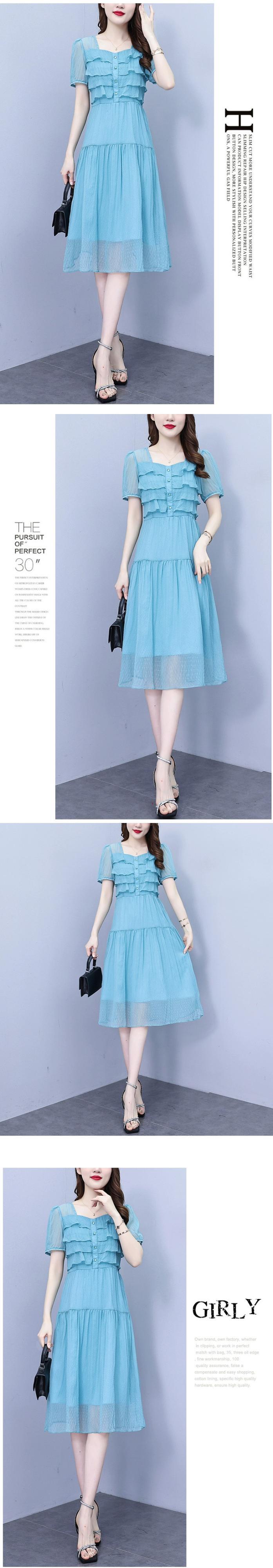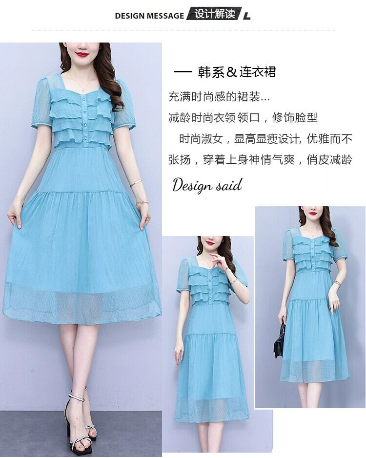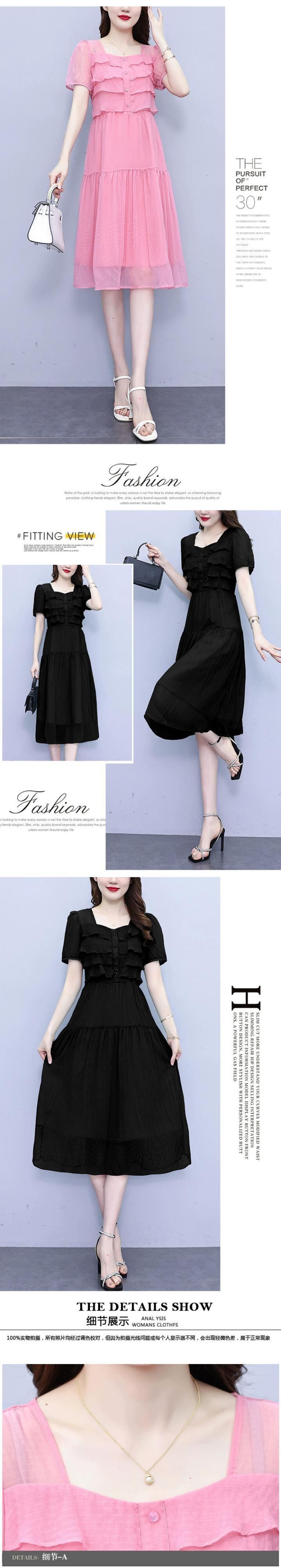 プラスサイズの婦人服 2023 流行の夏の新しい脂肪姉妹ファッション年齢削減スクエアカラードレススリム気質ファンロングスカート 大きめサイズ サマー 夏物 スクウェア 8884159688813346