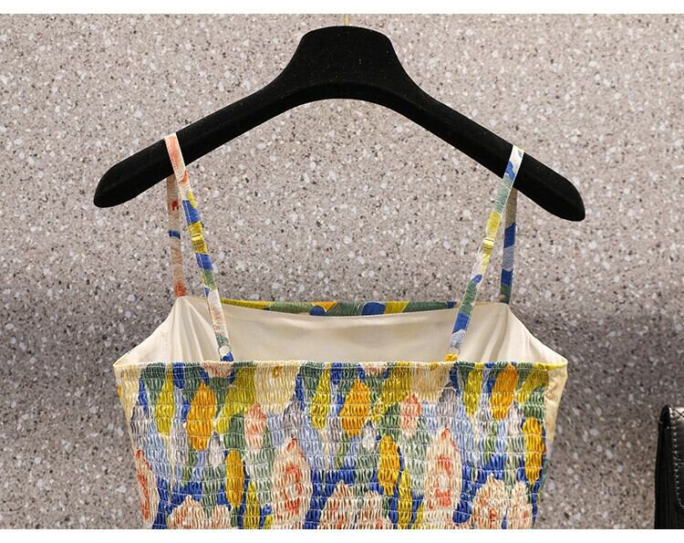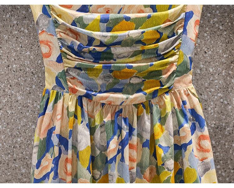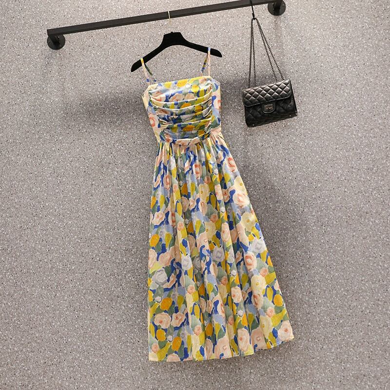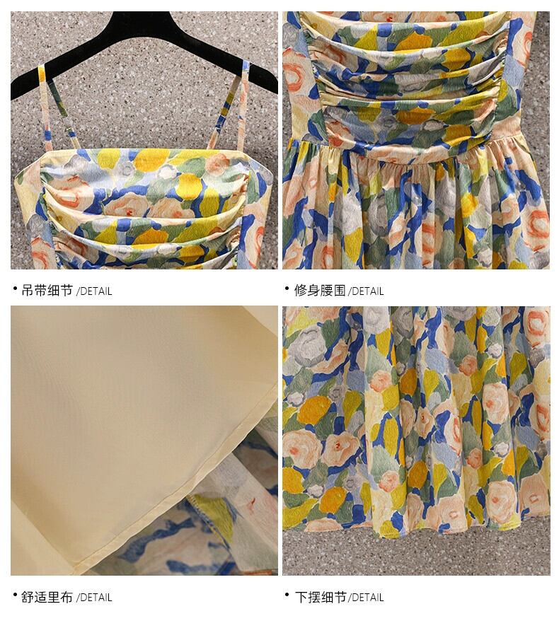 プラスサイズの婦人服 2023 脂肪姉妹夏の新しいスタイル薄くて年齢を軽減するフランスの油絵の花サスペンダー スカートカバー肉ドレス 大きめサイズ サマー 夏物 花柄 8884116480757291