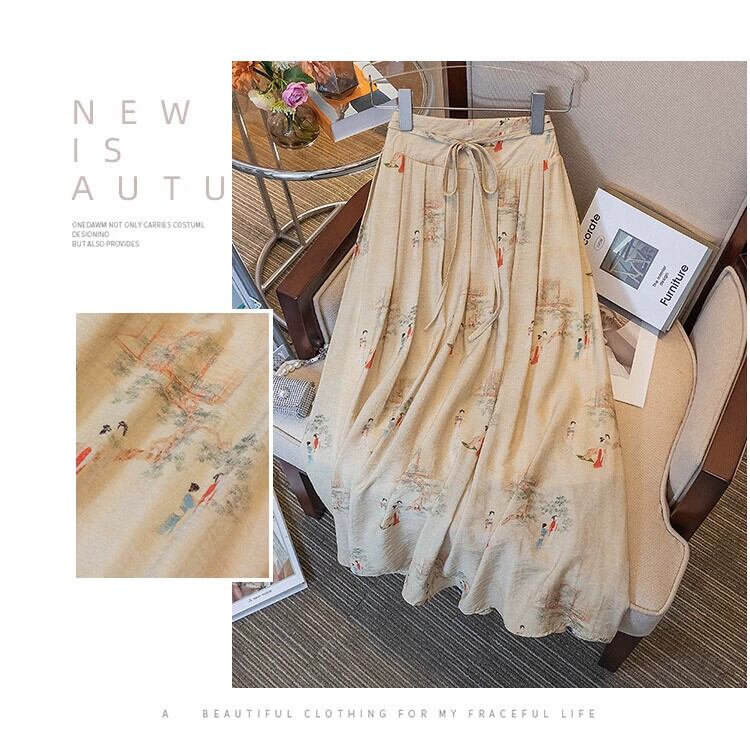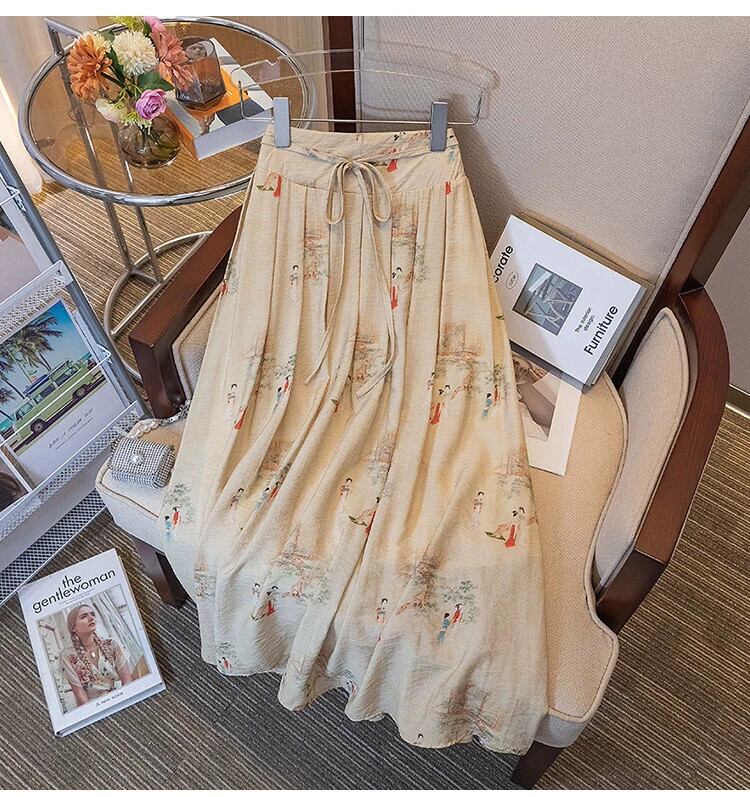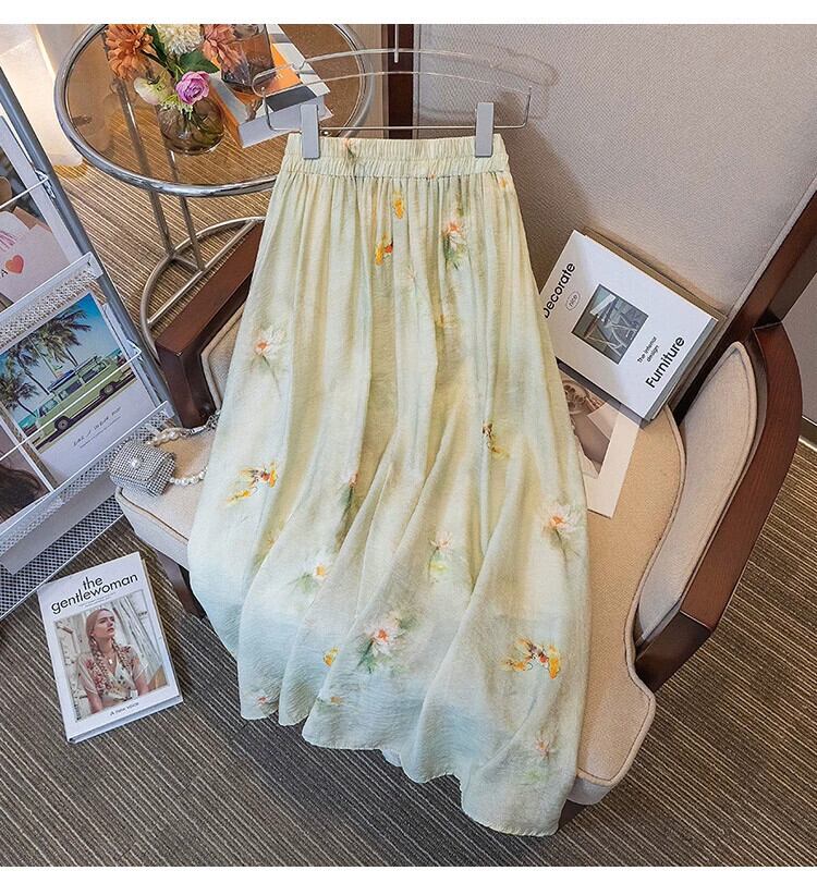 プラスサイズの婦人服 2023 脂肪姉妹夏新レトロプリントスカート a ラインスカートスリム花柄プリーツドレス 大きめサイズ サマー 夏物 Aライン 8884172413025273