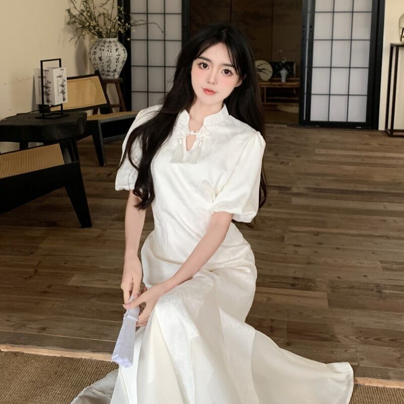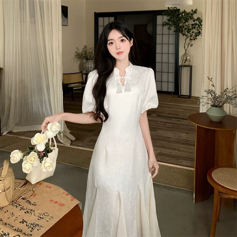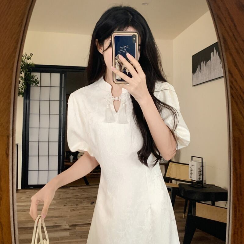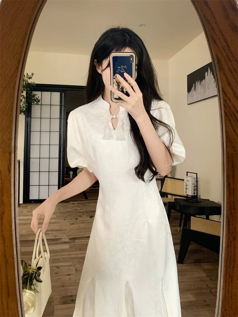 プラスサイズの婦人服 2023 脂肪姉妹夏の新スタイル中国の気質ロングスカート痩身ダークパターンジャカード電話ボタンドレス 大きめサイズ サマー 夏物 8884182379464434