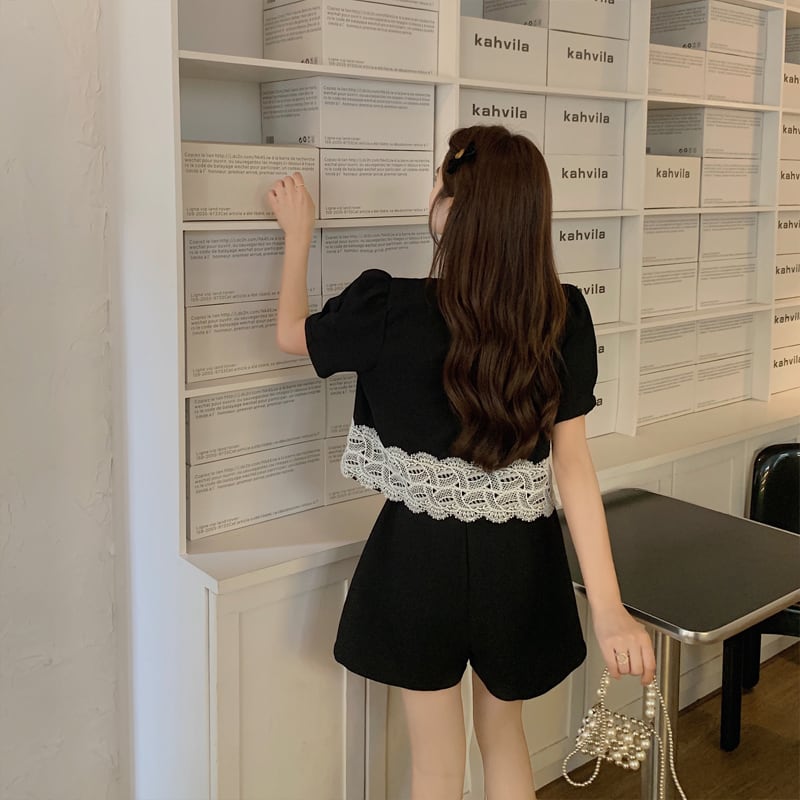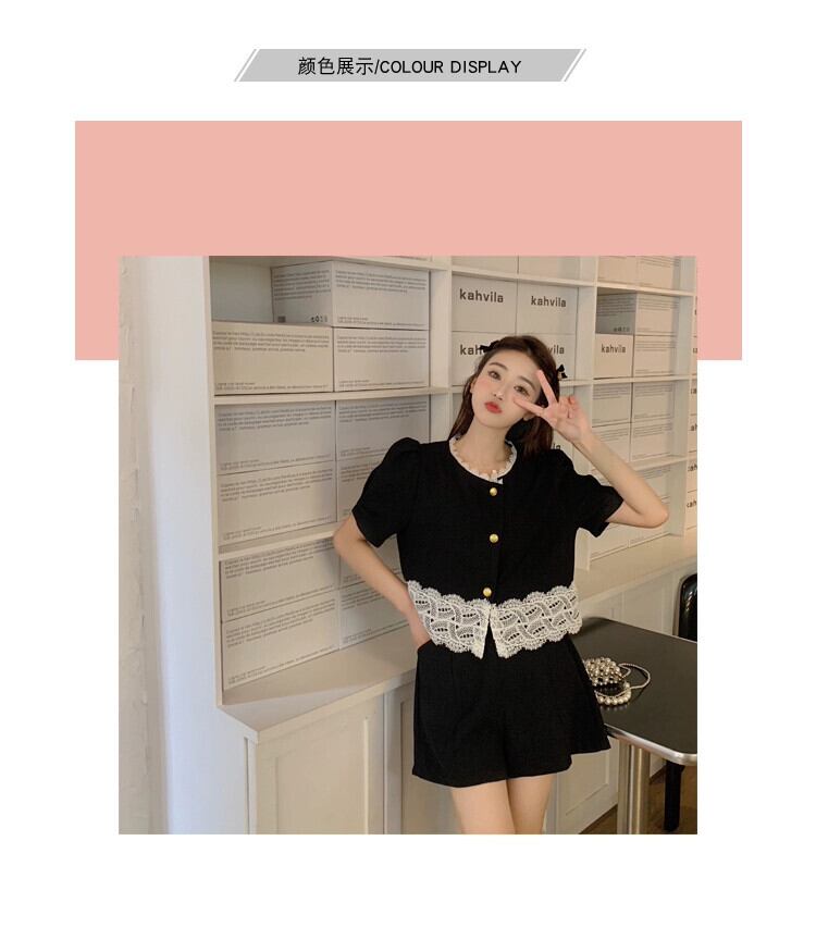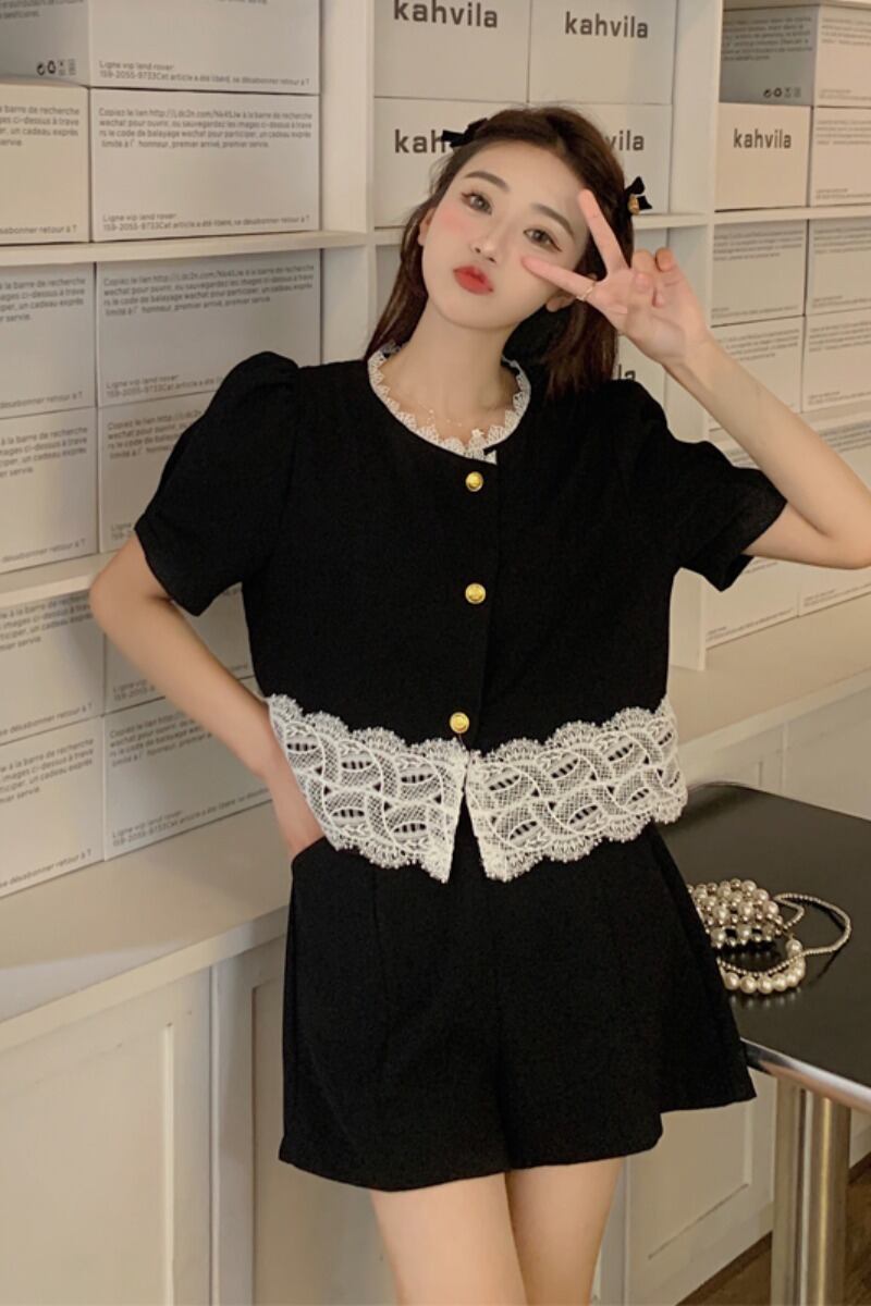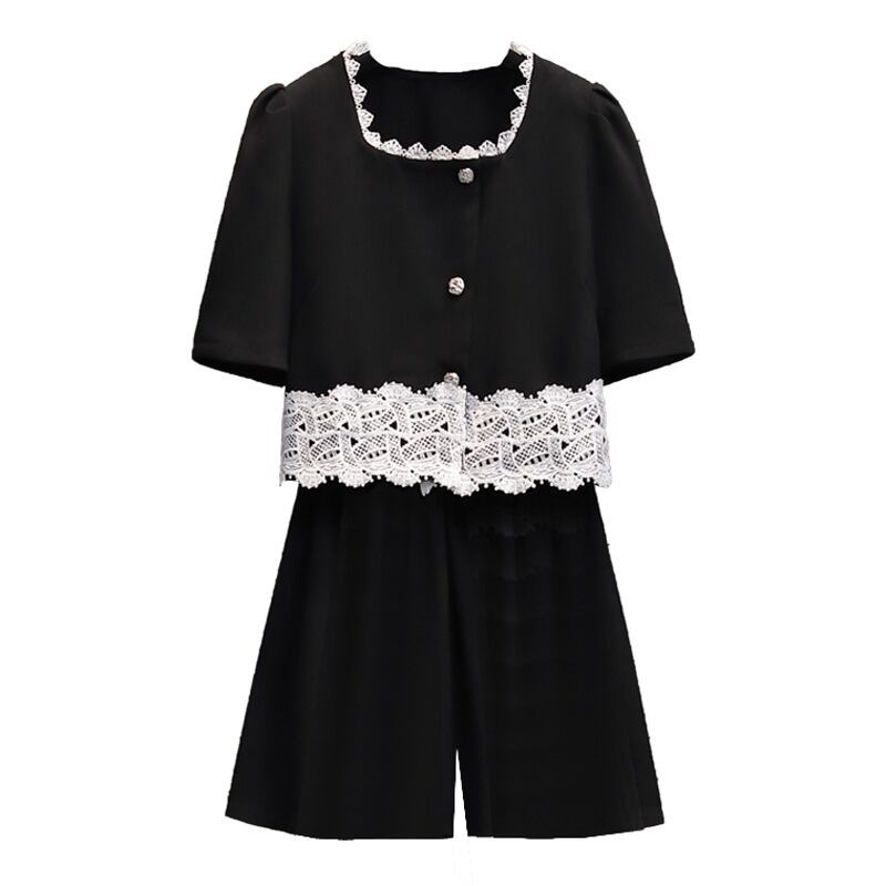プラスサイズの婦人服 2023 流行の夏の新しいファットシスターファッション気質スーツレースオールマッチトップショーツ 2 点セット 大きめサイズ サマー 夏物 ブルマー 8884136641326010
