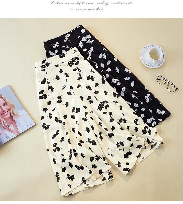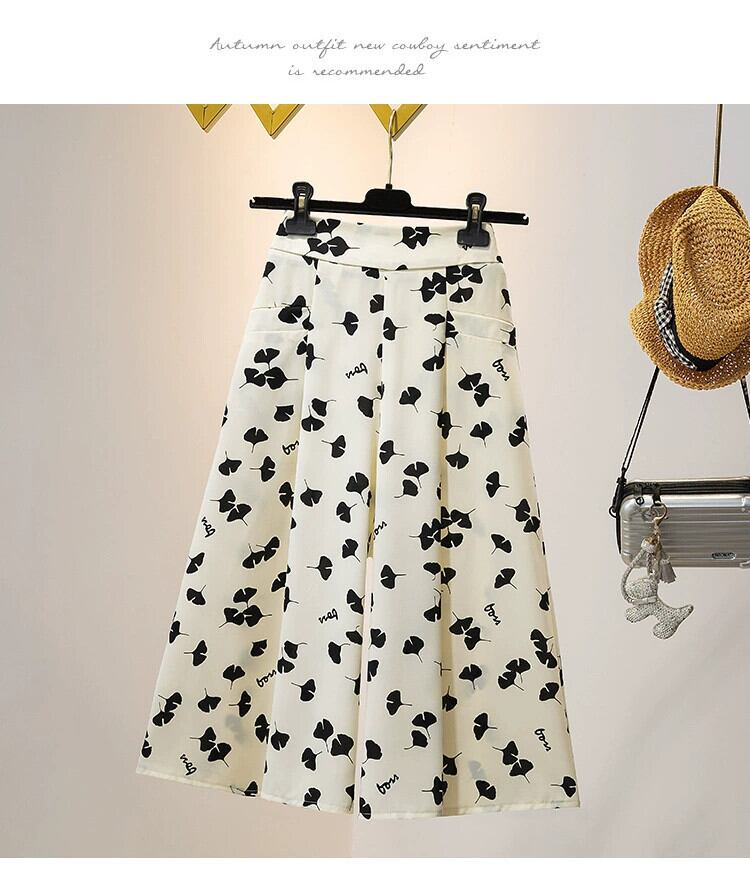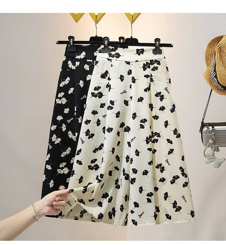 2023 新しい夏の大きいサイズの婦人服気質ルーズで薄いアイスシルクシフォンカジュアル花柄クロップドワイドレッグスカート 大きめサイズ サマー 夏物 8884120002885092