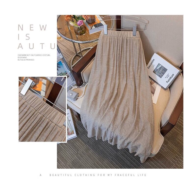プラスサイズの婦人服 2023 ファットシスター夏新レトロプリーツスカートニッチルーズスリムドレープミッドレングススカート 大きめサイズ サマー 夏物 8884192891178683