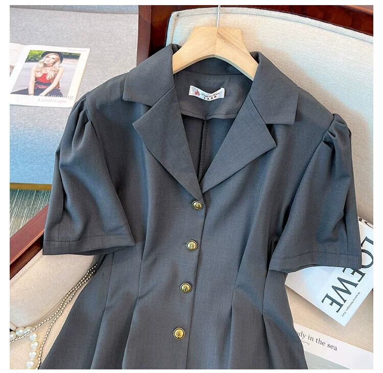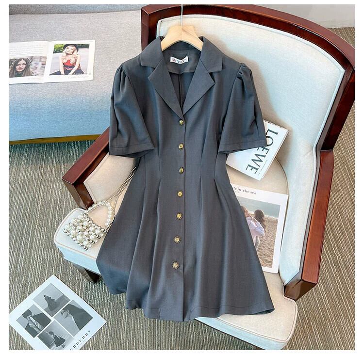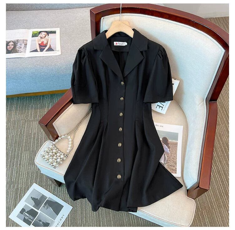 プラスサイズの婦人服 2023 夏服ファットシスターカジュアル気質フレンチ A ラインスカートデザインセンス無地年齢軽減ドレス 大きめサイズ サマー 夏物 Aライン ソリッドカラー 8884178288458644