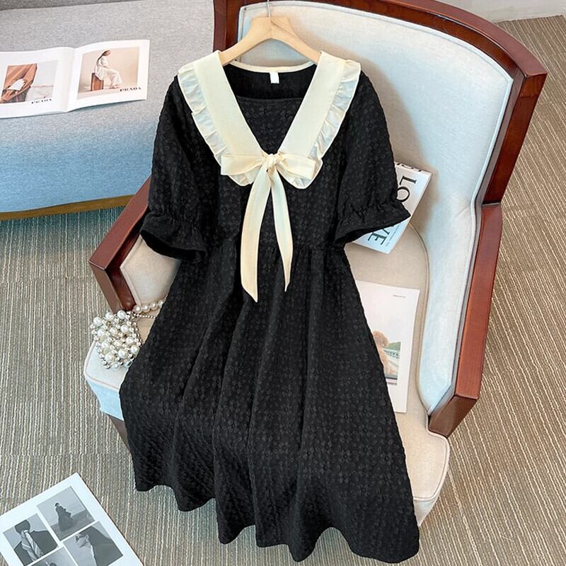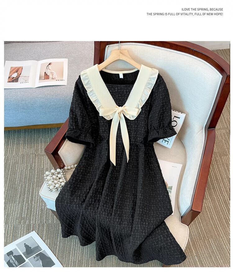 プラスサイズの婦人服 2023 夏のドレス脂肪姉妹フランスの気質カバー肉 A ラインスカートスリムジャカード人形襟ドレス 大きめサイズ サマー 夏物 Aライン 8884150224798184