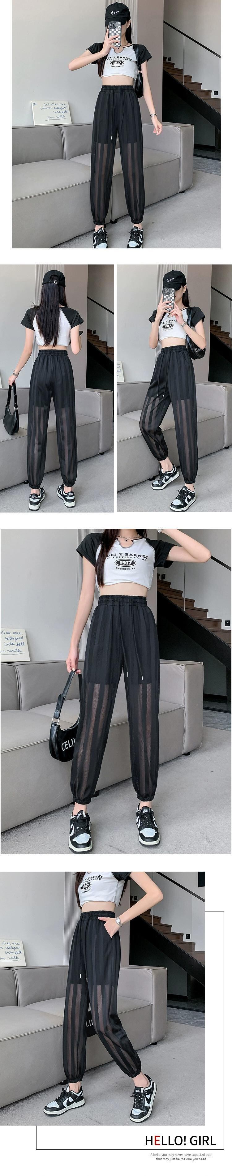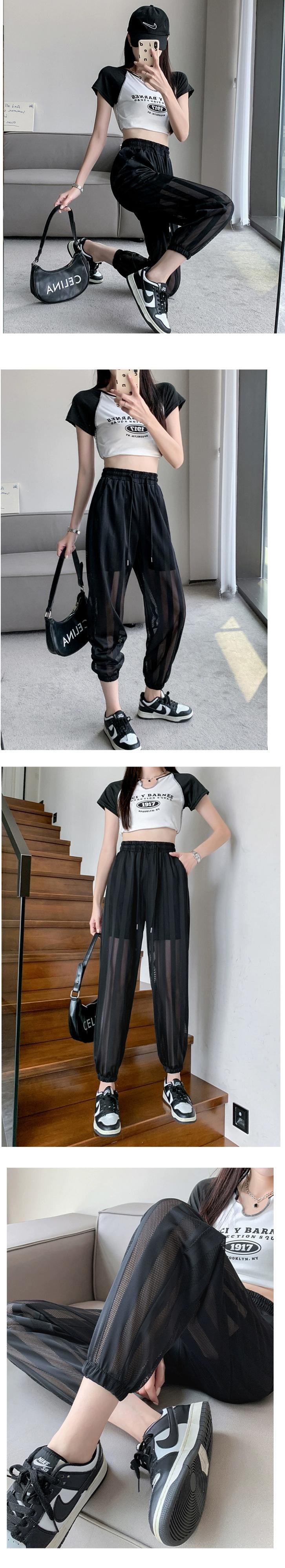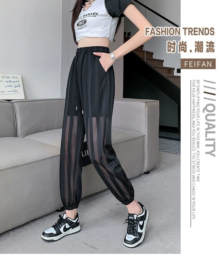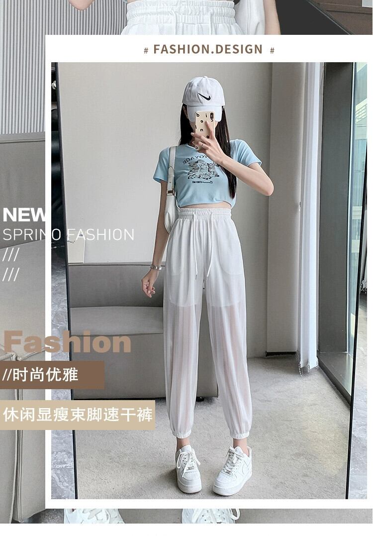 プラスサイズの婦人服 2023 流行の夏の新しいファットシスターファッション速乾性パンツアイスシルクスポーツパンツメッシュ糸 9 点カジュアルパンツ 大きめサイズ サマー 夏物 8884198861322423