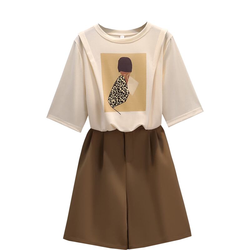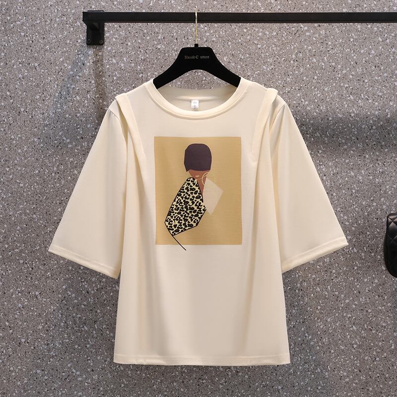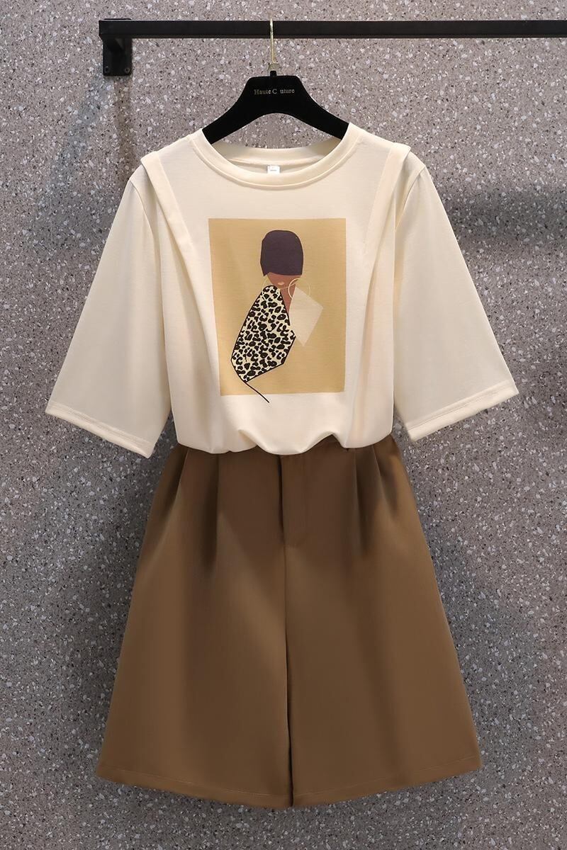 プラスサイズの婦人服 2023 ファットシスター夏の新スポーツスーツラウンドネック半袖 Tシャツワイドレッグパンツカジュアルツーピーススーツ 大きめサイズ サマー 夏物 Oネック 8884194211965431