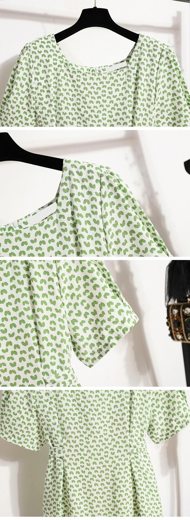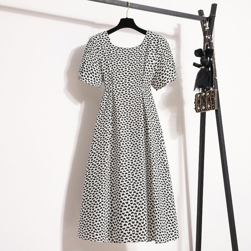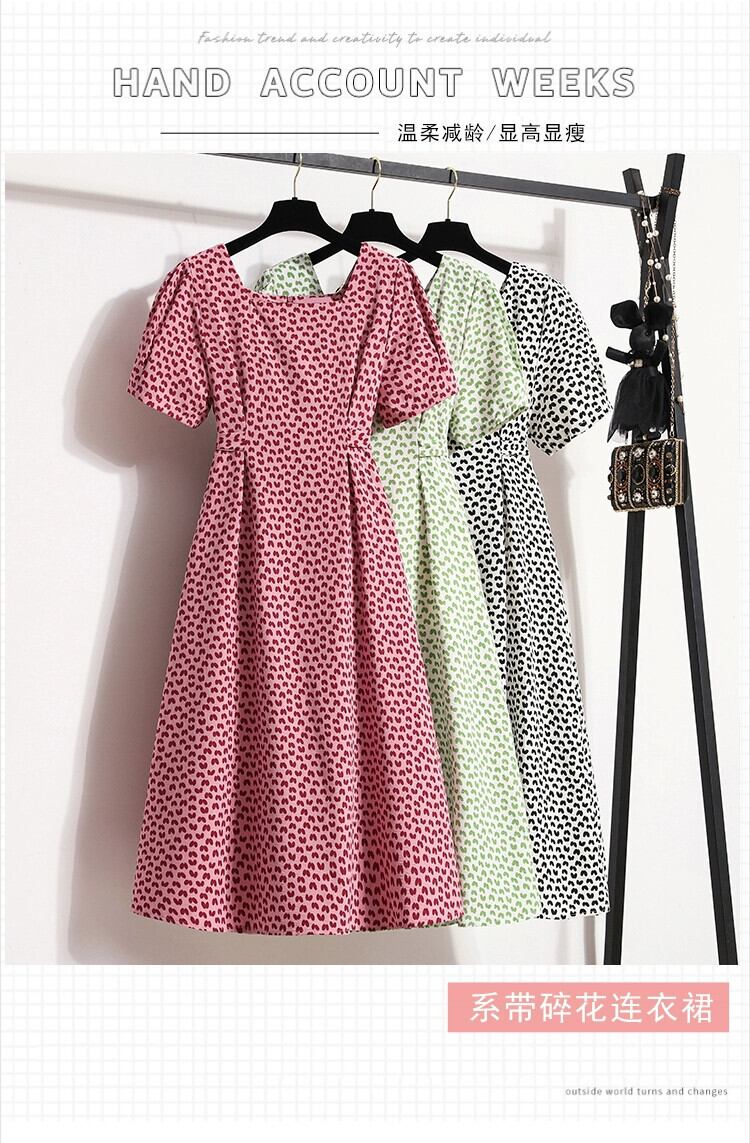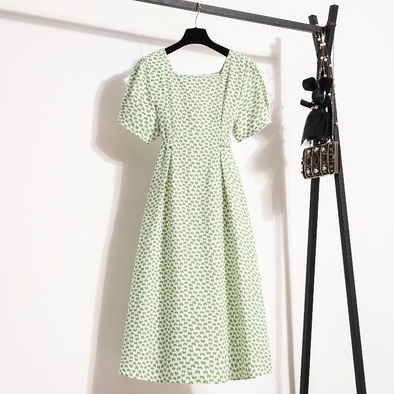 プラスサイズの婦人服 2023 夏服ファットシスタースクエアカラーパフスリーブ花柄スカートデザインセンスニッチカバーベリードレス 大きめサイズ サマー 夏物 スクウェア 8884125891466365