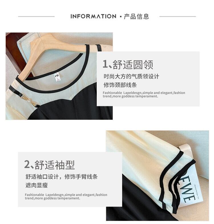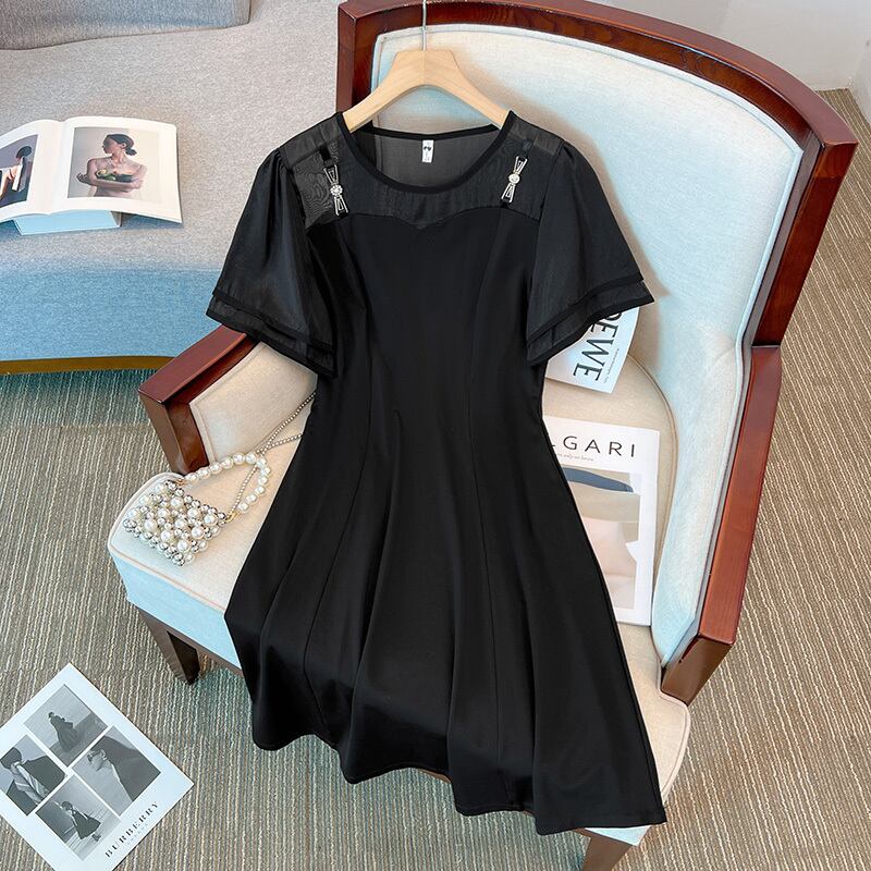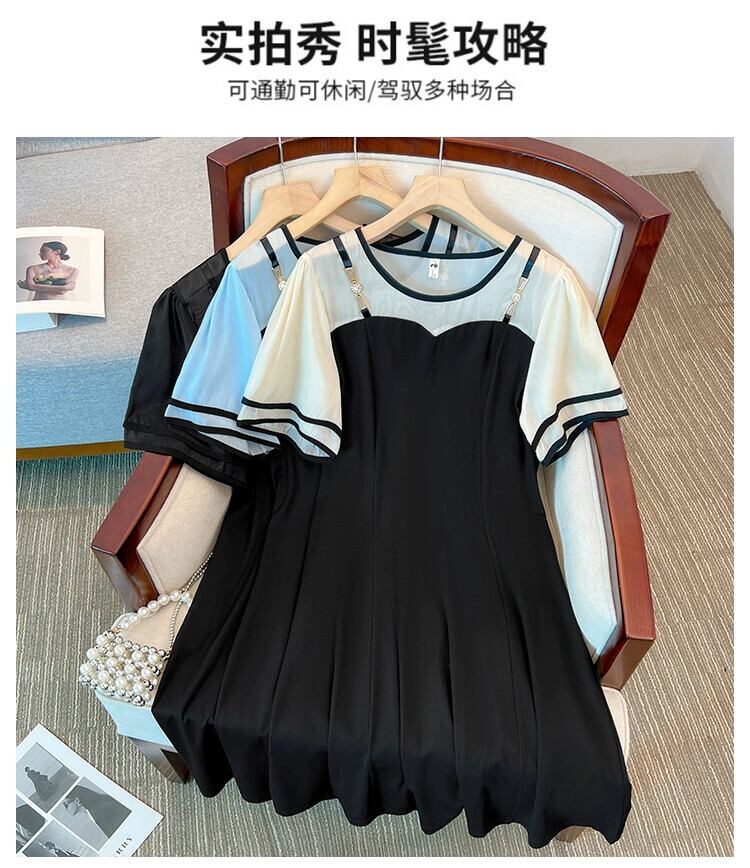 プラスサイズの婦人服 2023 夏服脂肪姉妹気質スプライシング偽ツーピースシックな A ラインスカートフレンチニッチドレス 大きめサイズ サマー 夏物 Aライン 8884175597519486