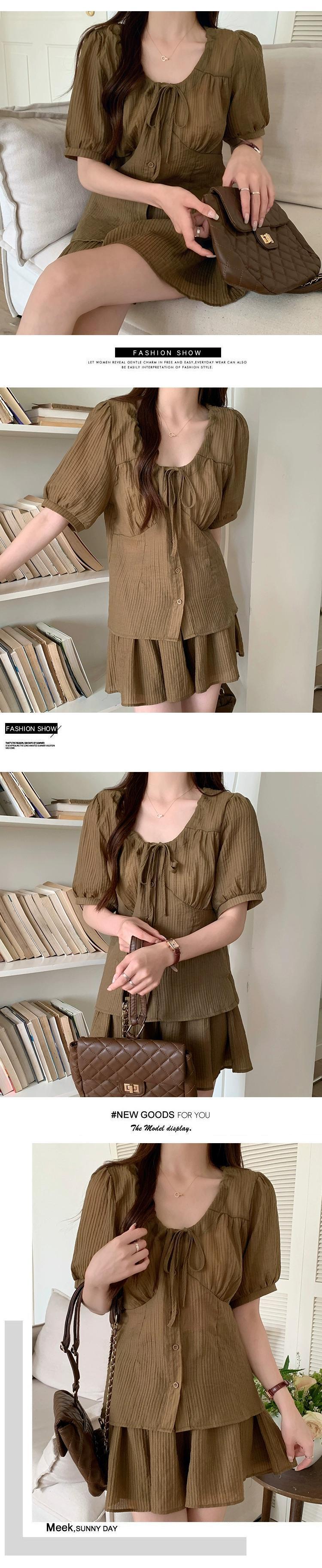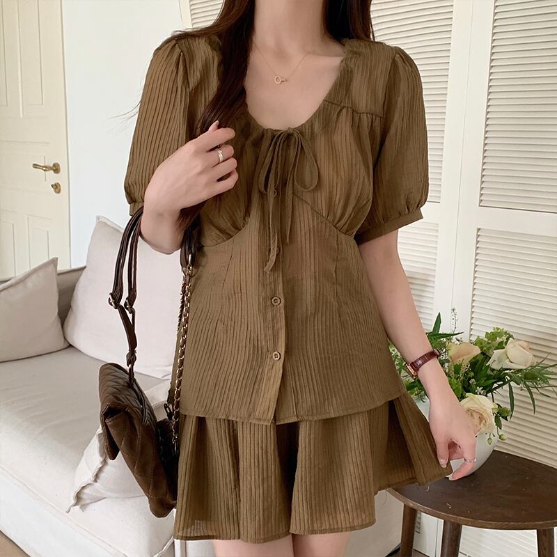 プラスサイズの婦人服 2023 流行の夏の新しい脂肪姉妹気質 V ネックツーピース巾着シャツカジュアルショートパンツスーツ 大きめサイズ サマー 夏物 ショーツ ブルマー Vネック 8884142440478622