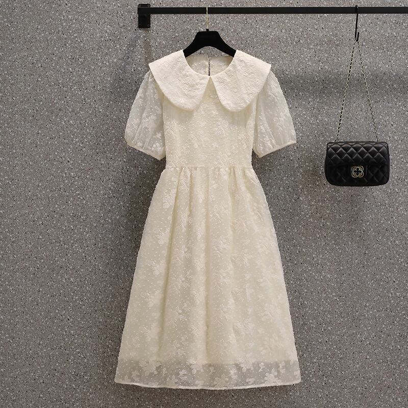 プラスサイズの婦人服 2023 脂肪姉妹夏の新フランスファッション a ラインスカート気質人形襟ルーズドレス 大きめサイズ サマー 夏物 Aライン 8884159638452502