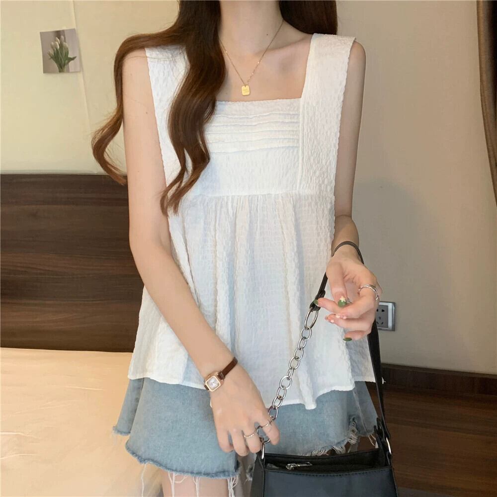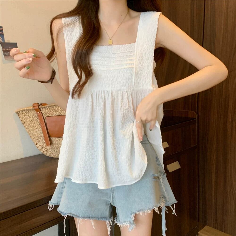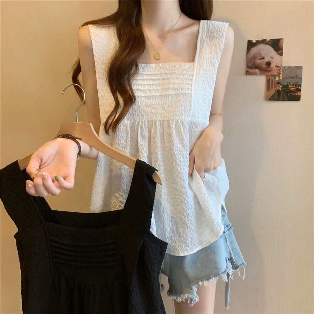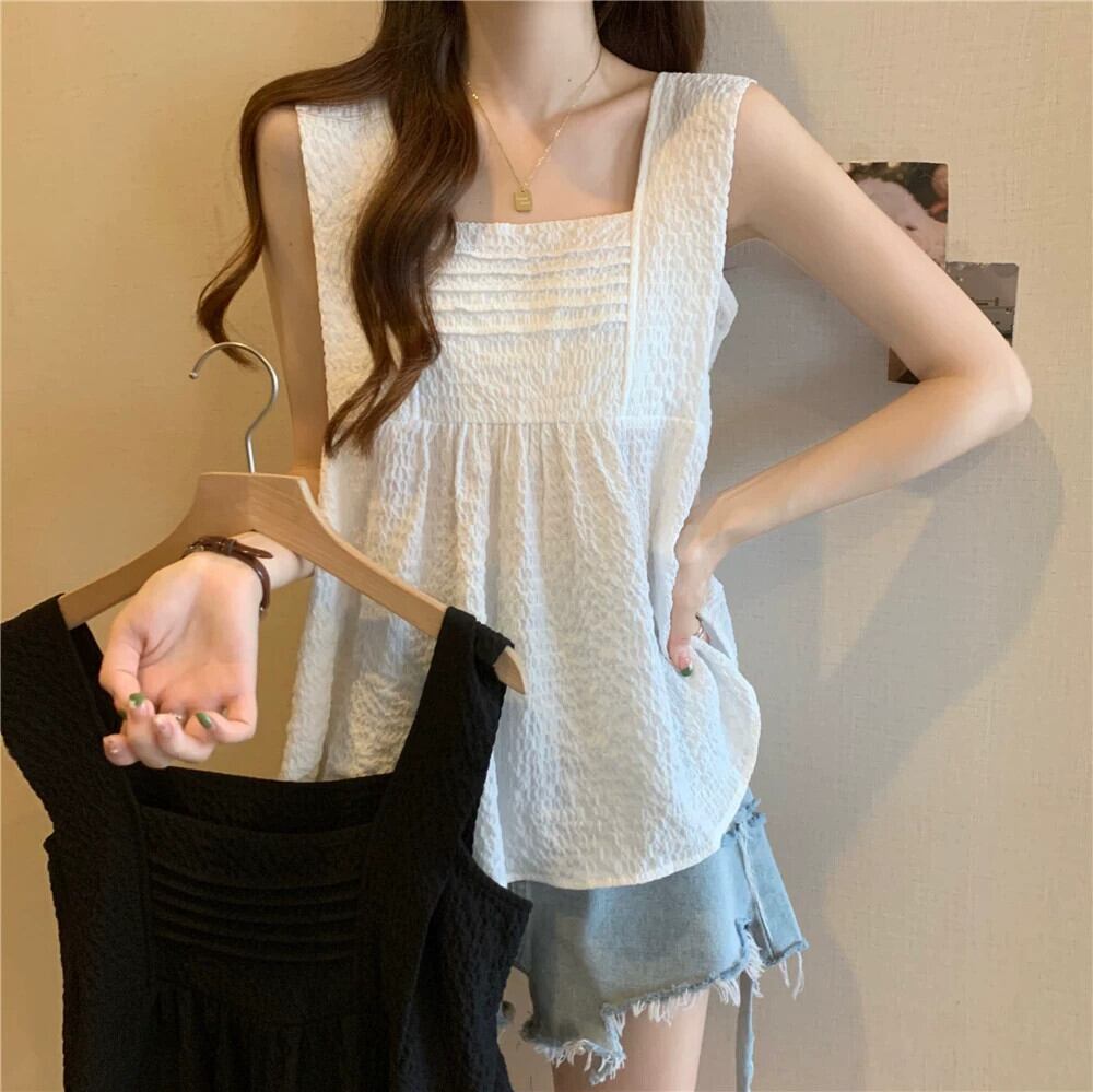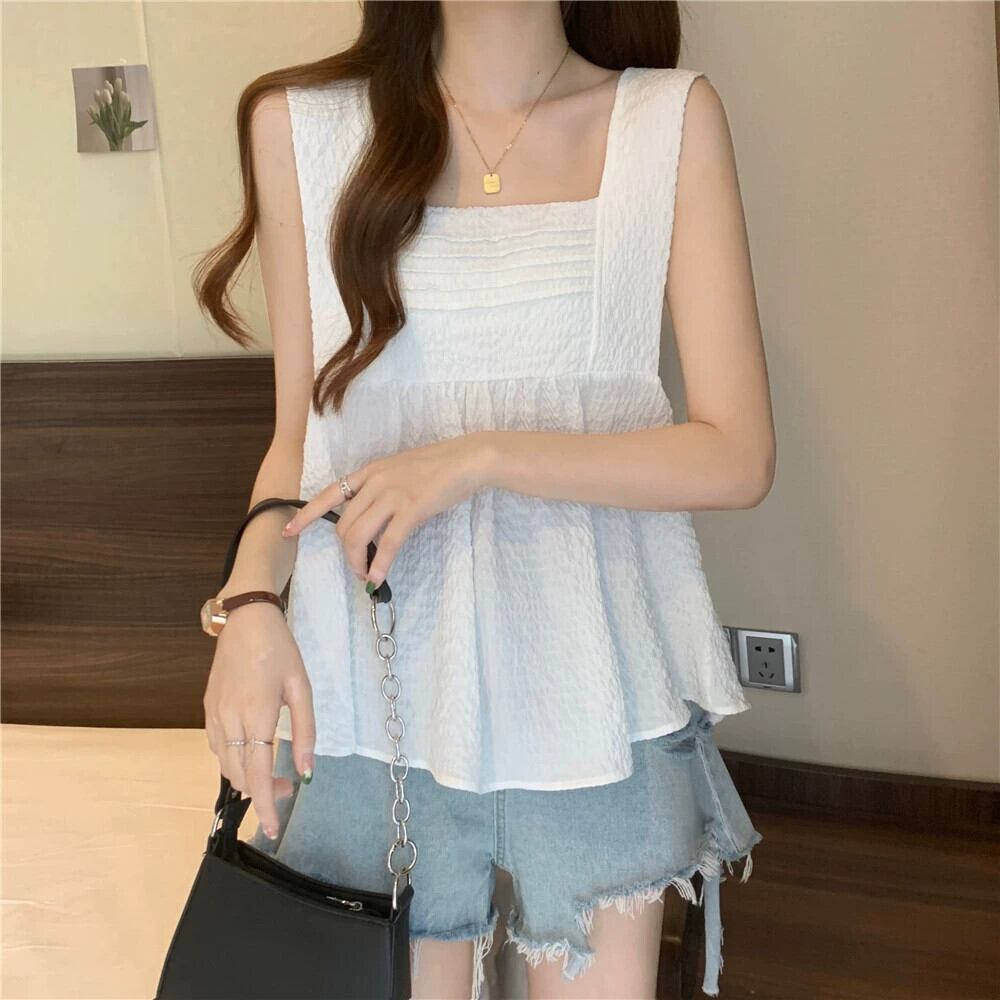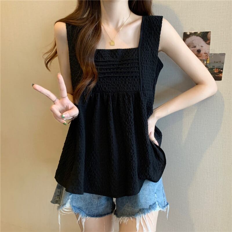 大きいサイズの太った妹は、夏には薄いプリーツのフリル付きボトムトップスを着て、つばの広いノースリーブキャミソールを着ています 大きめサイズ サマー 夏物 8884117209613362