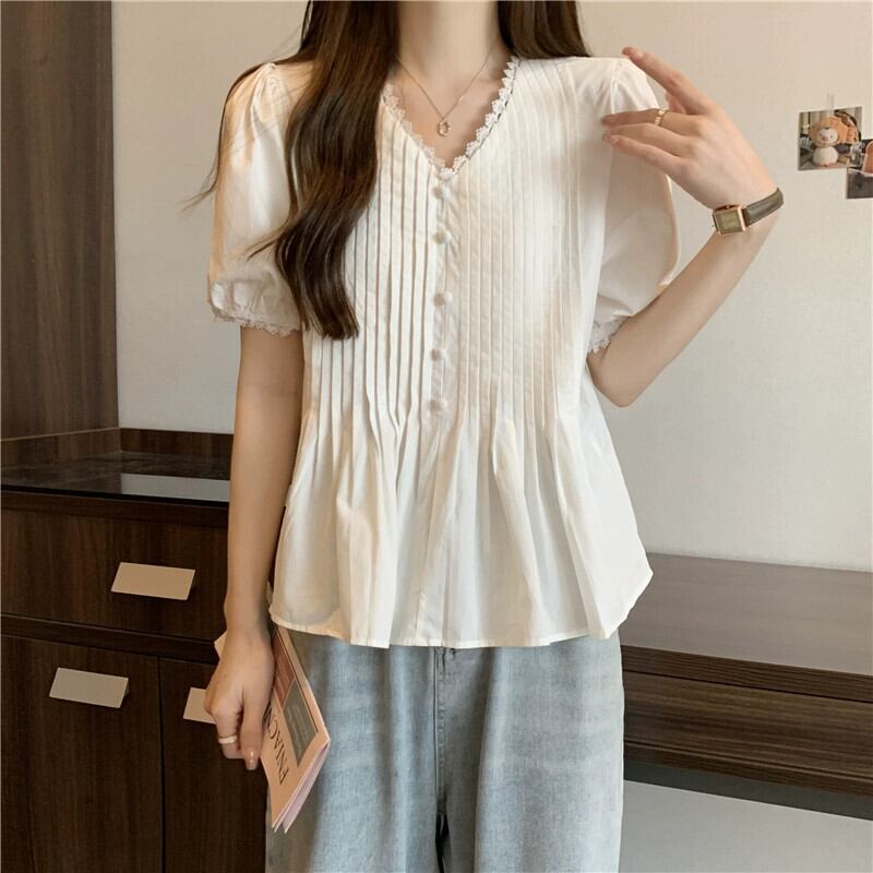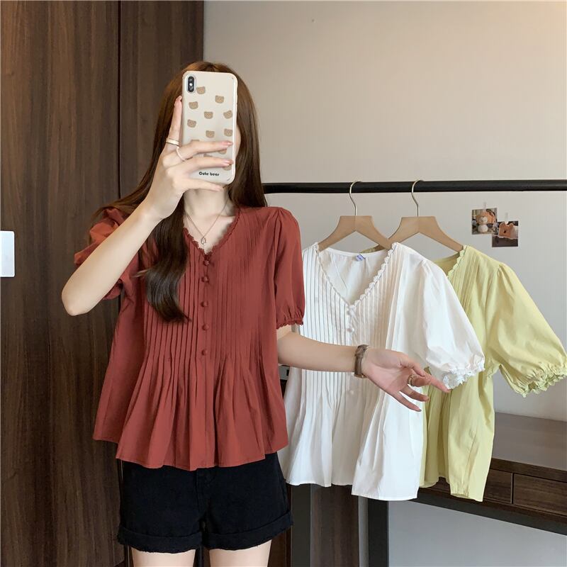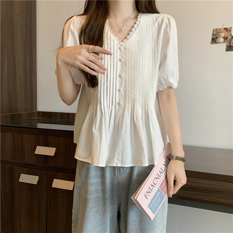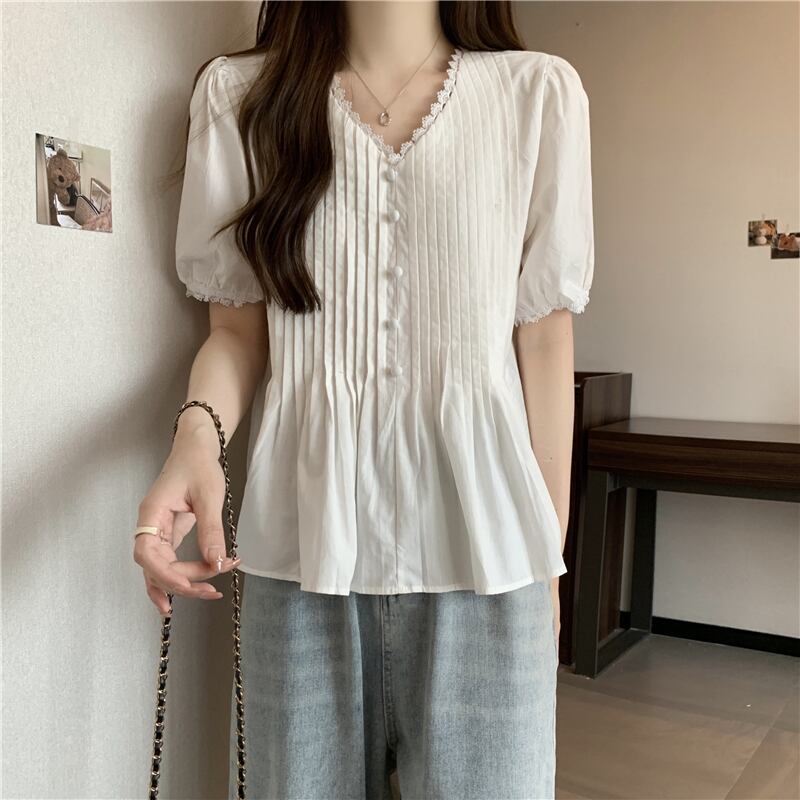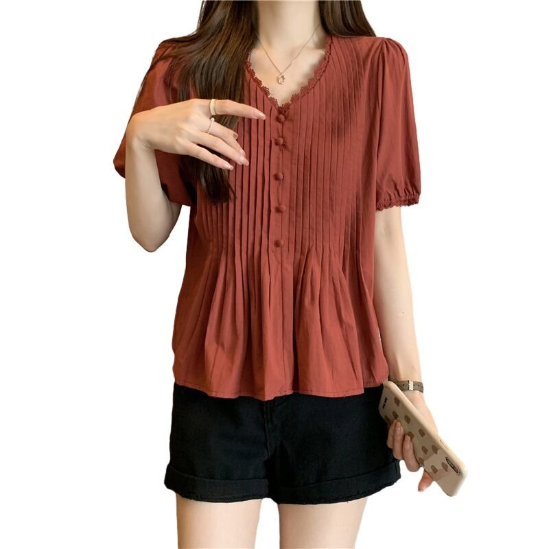 プラスサイズの婦人服 2023 ファットシスター夏新 V ネックフリルブレストデザインセンスニッチシフォンシャツトップ 大きめサイズ サマー 夏物 Vネック 8884166410504813