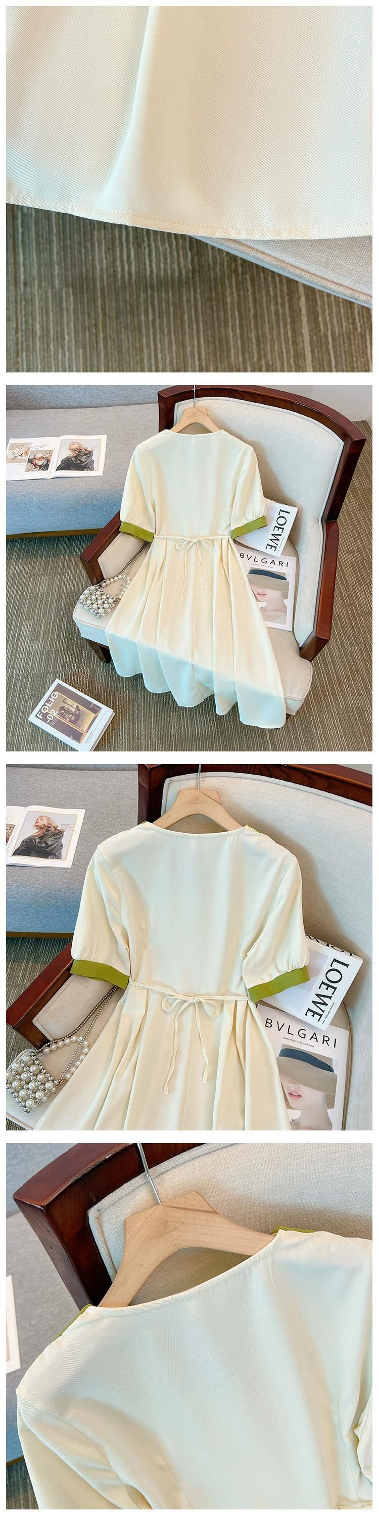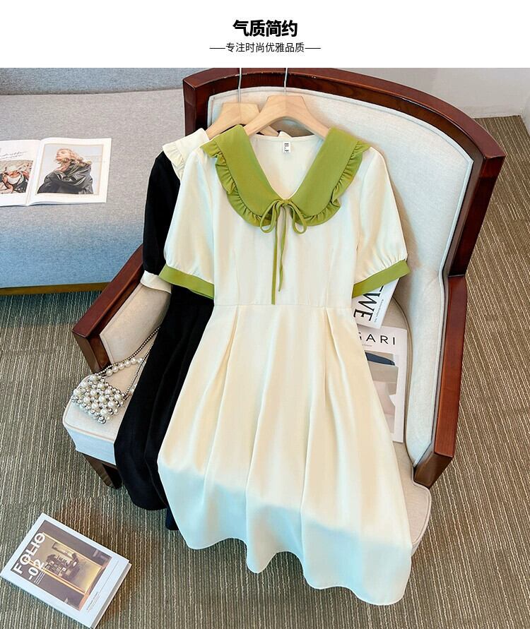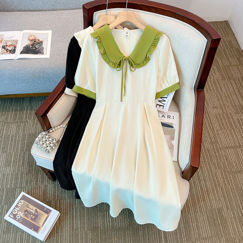 プラスサイズの婦人服 2023 夏服ファットシスターレトロヘップバーンスタイル A ラインスカートデザインシックでシックな腹カバードレス 大きめサイズ サマー 夏物 Aライン 8884188128110346
