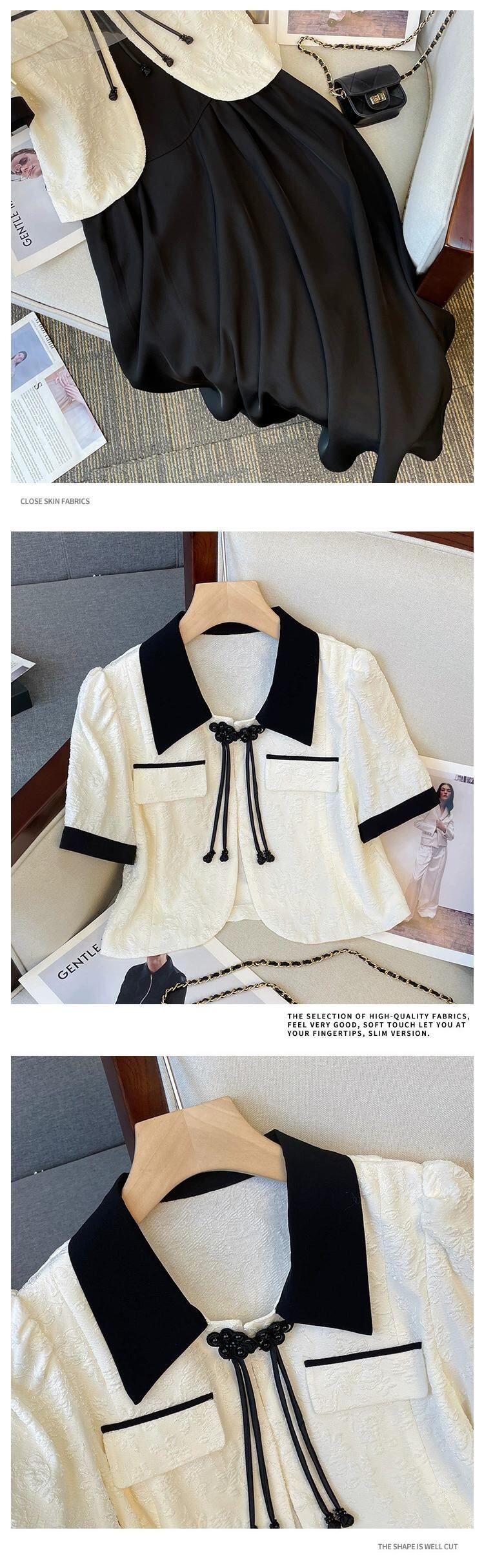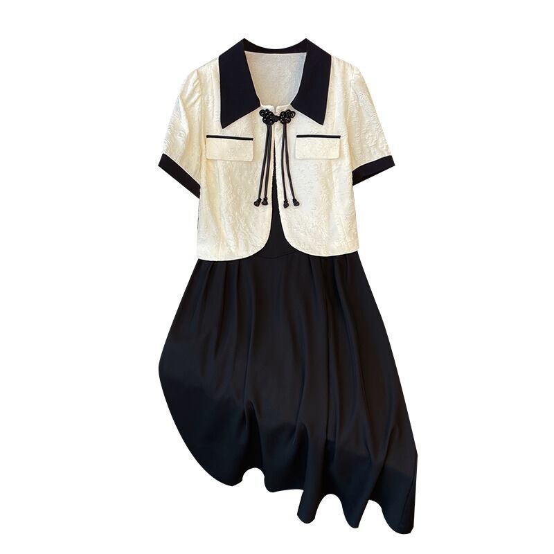 プラスサイズの婦人服 2023 夏服脂肪姉妹年齢を軽減する新しい中国風バックルジャケットカジュアルニッチサスペンダースカート 2 点セット 大きめサイズ サマー 夏物 8884198226685550