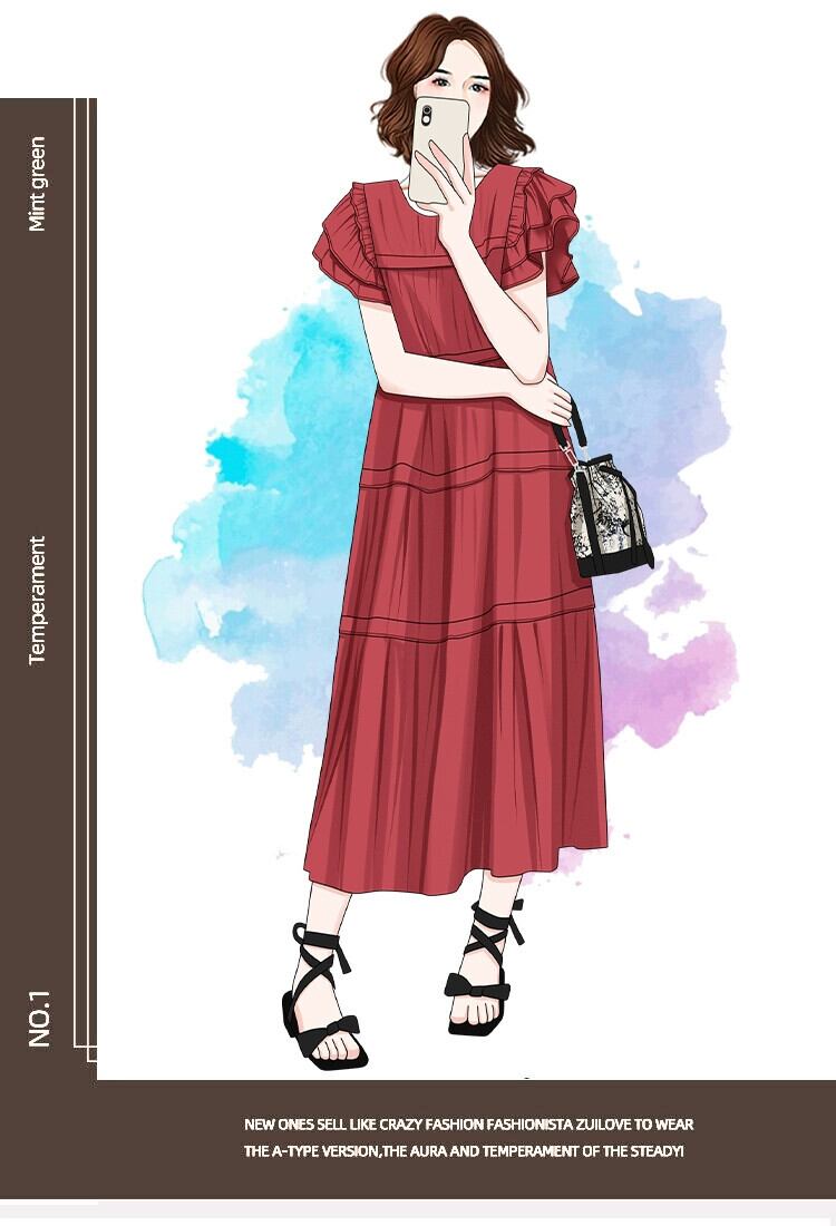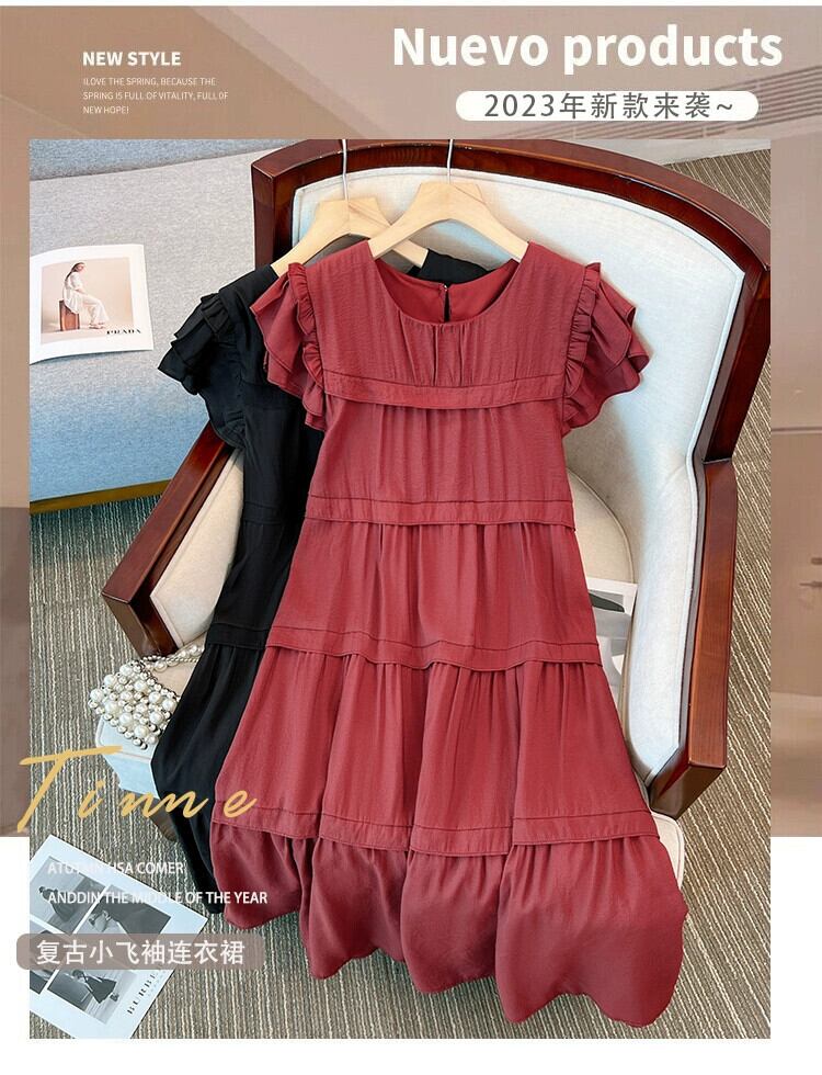 大きいサイズの女性のサマードレスファットシスターフレンチaラインスカートニッチドレス気質半袖スリムファットmmスカート 大きめサイズ 夏物 8884144675871966