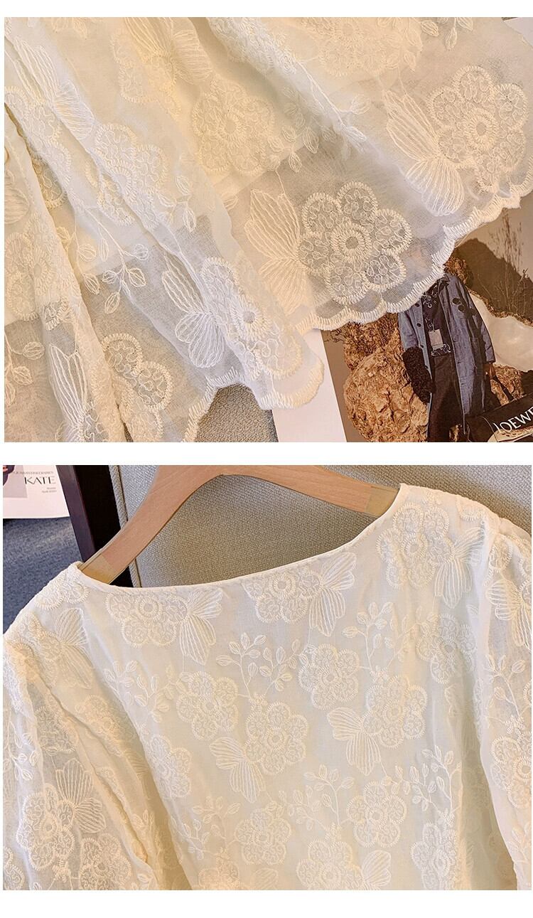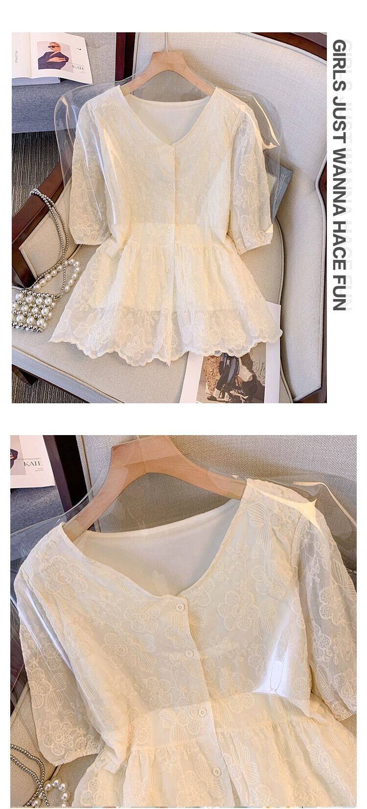 大きいサイズの脂肪姉妹女性夏フレンチ V ネックレースシフォン人形シャツルーズ年齢軽減半袖シャツ腹カバートップ 大きめサイズ サマー 夏物 Vネック 888413574471134