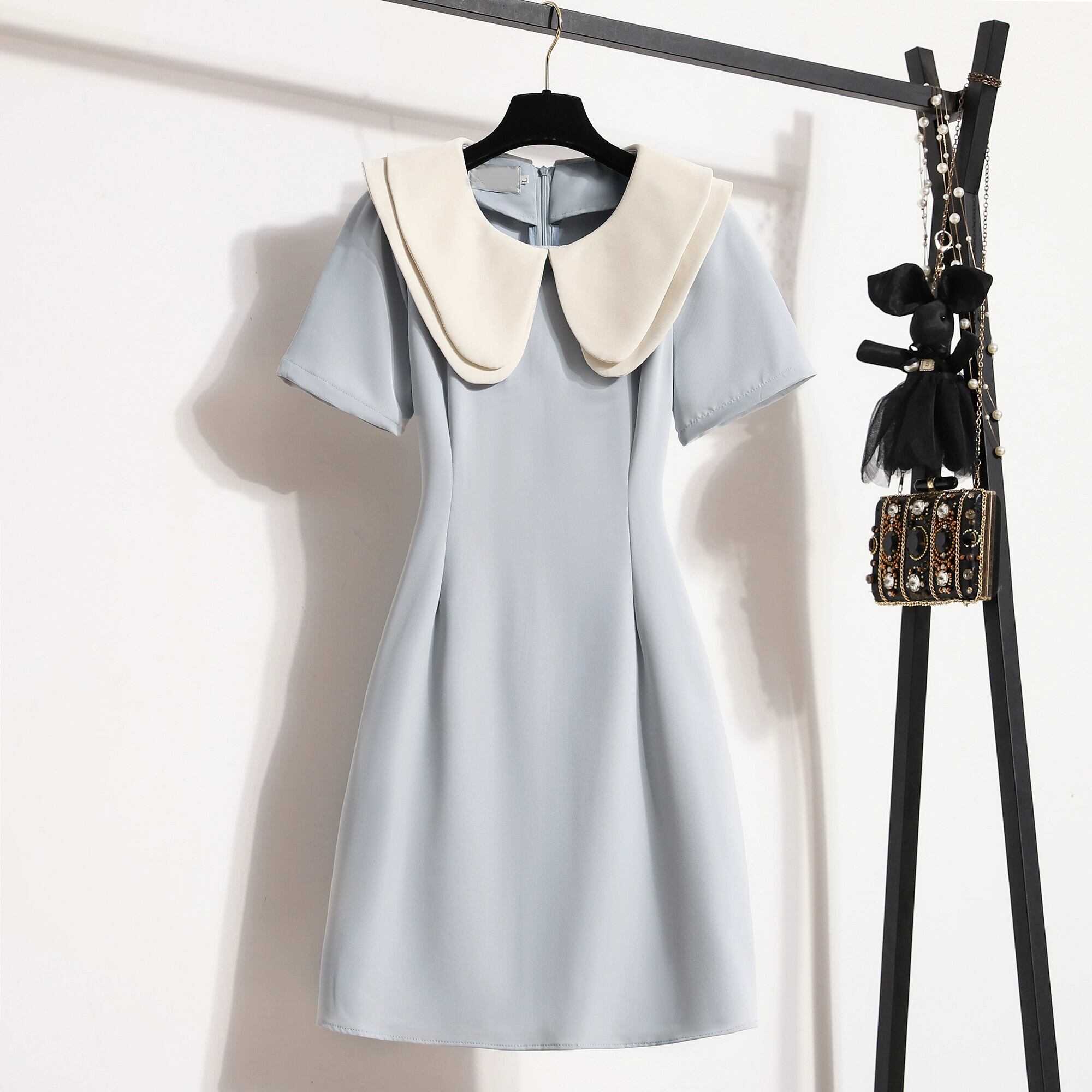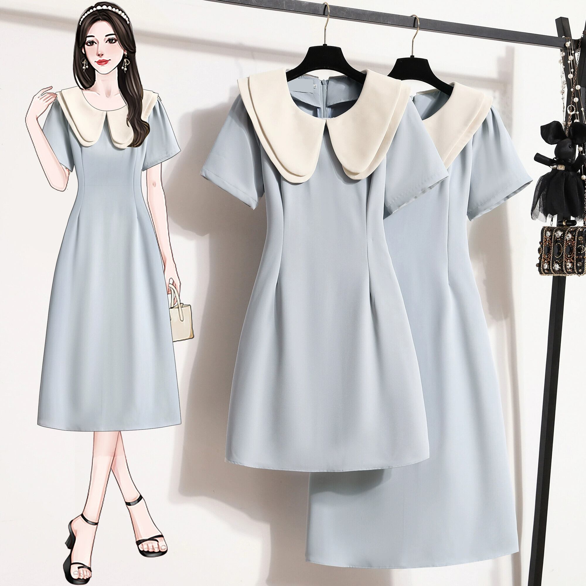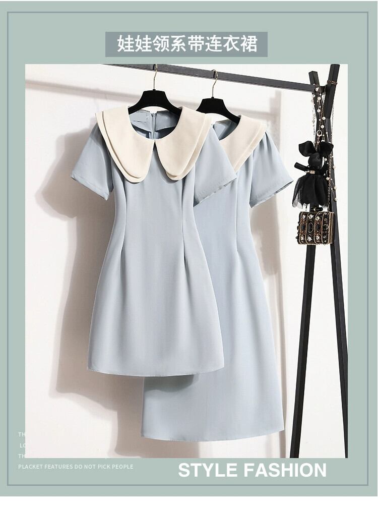 プラスサイズの婦人服 2023 脂肪姉妹夏の新しい甘い二重層人形ラペルスカートスリムロングとショートドレス 大きめサイズ 大人ガーリー スウィート キュート カジュアル サマー 夏物 8884165457309835