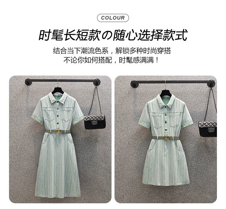 プラスサイズの婦人服 2023 夏服ファットシスター気質デザイン半袖 A ラインスカート年齢を軽減するオールマッチドレスヒップをカバー 大きめサイズ サマー 夏物 Aライン 8884182482259086