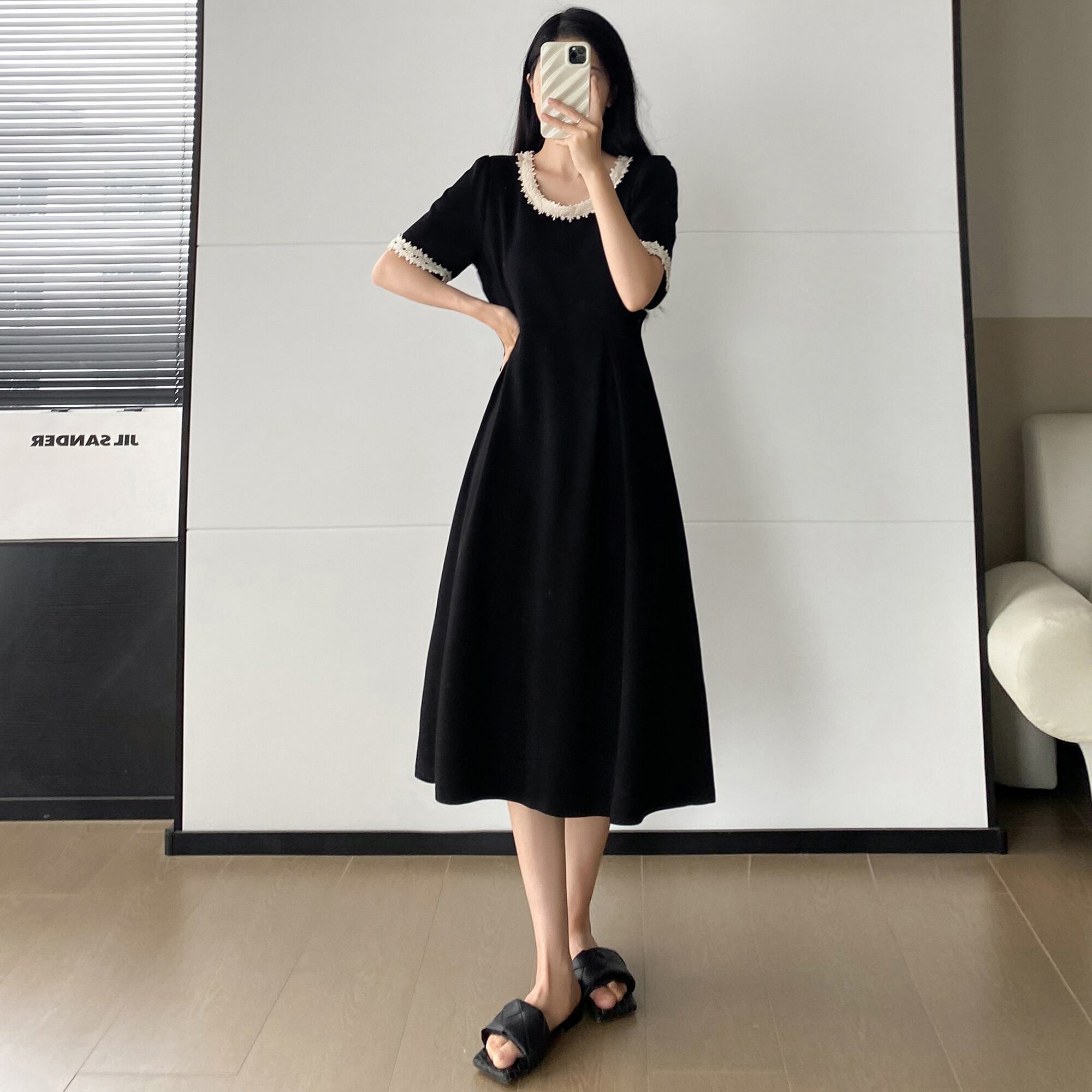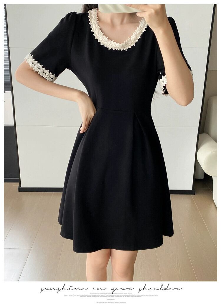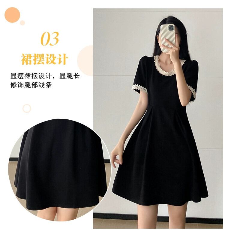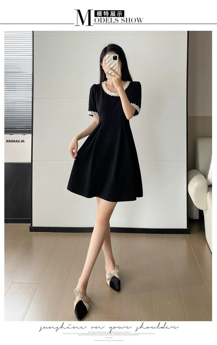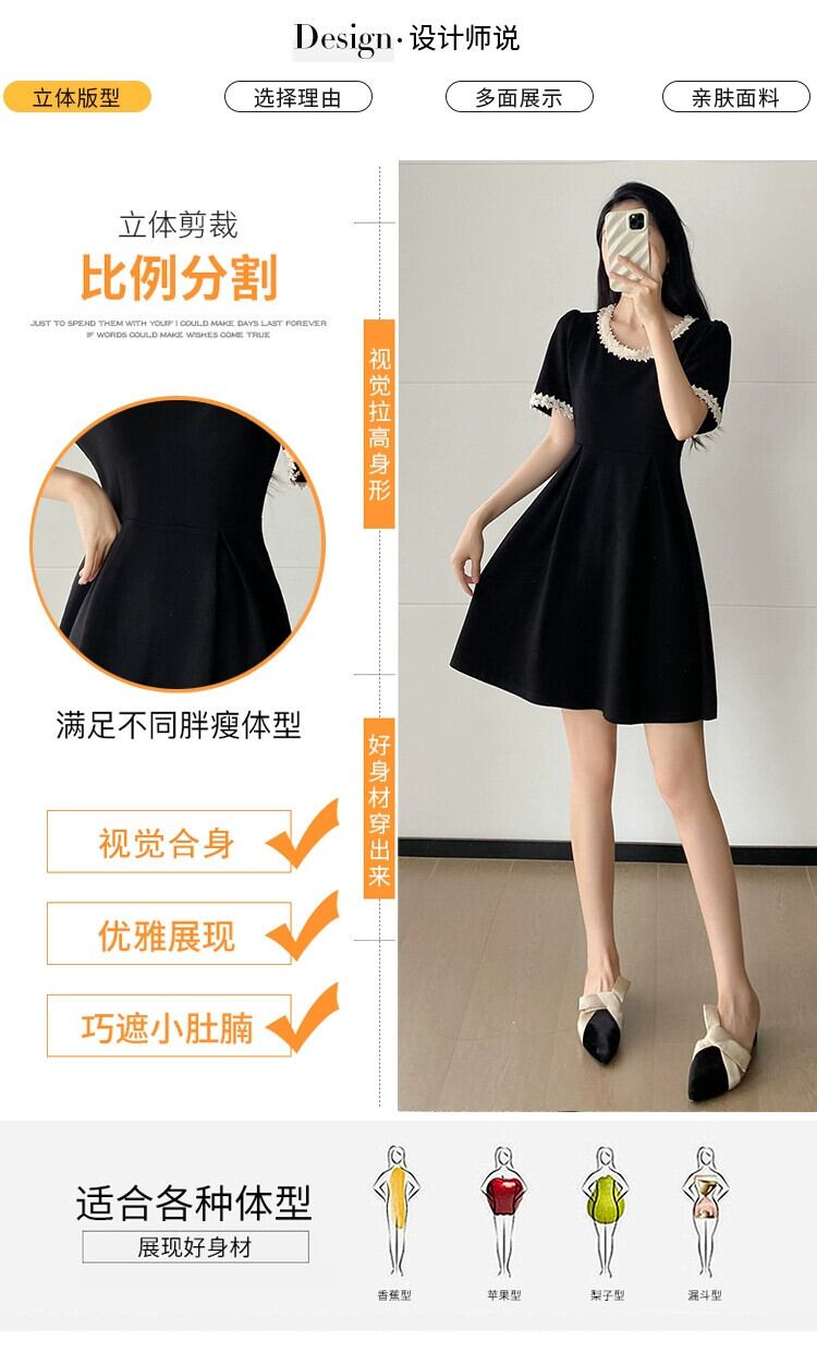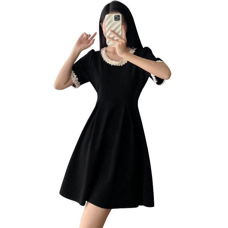 プラスサイズの婦人服 2023 夏服脂肪年齢を軽減するヘップバーンスタイルのレトロな A ラインスカートフレンチシックなカジュアルドレス 大きめサイズ サマー 夏物 Aライン 8884145963298316