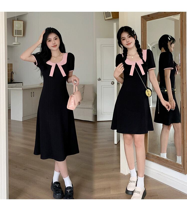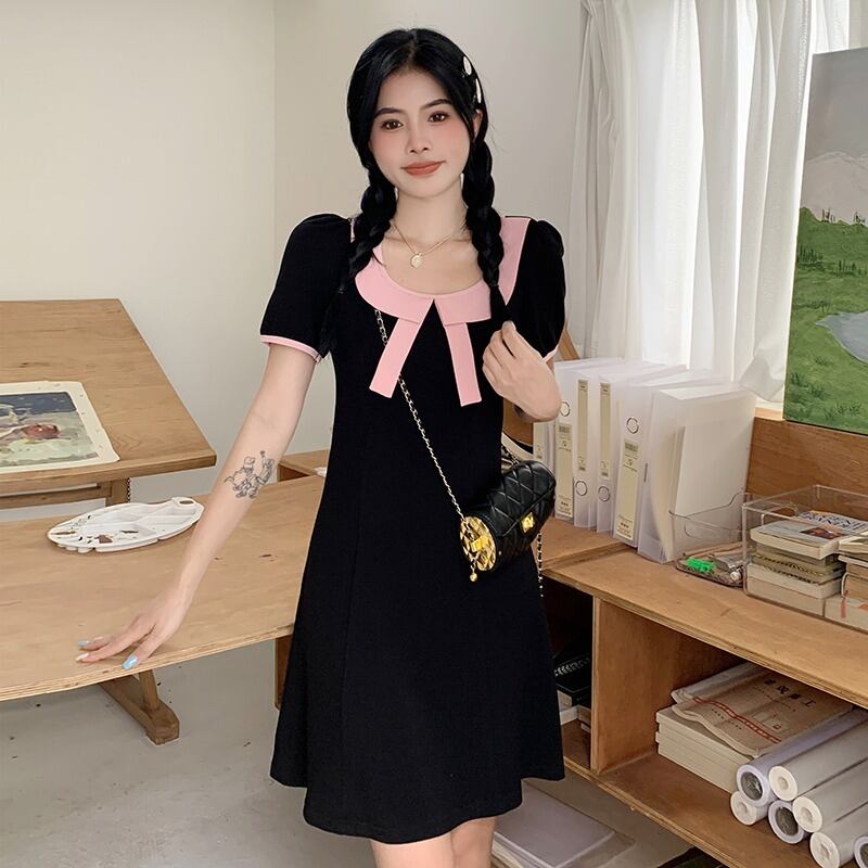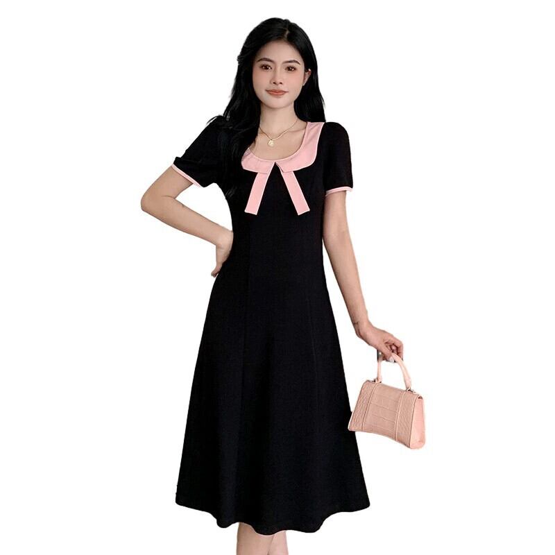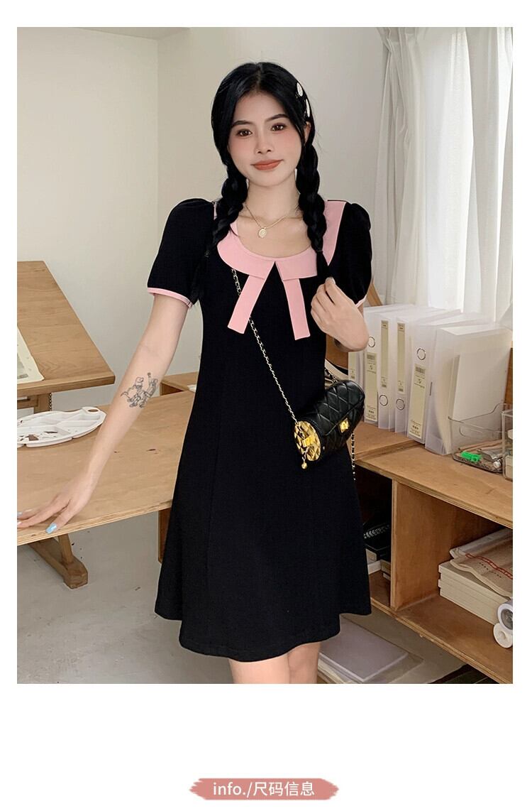 プラスサイズの婦人服 2023 流行の夏の新しいファットシスターちょう結び人形襟スカート私室ハニードレスロングとショートドレス リボン 大きめサイズ サマー 夏物 8884132429403798