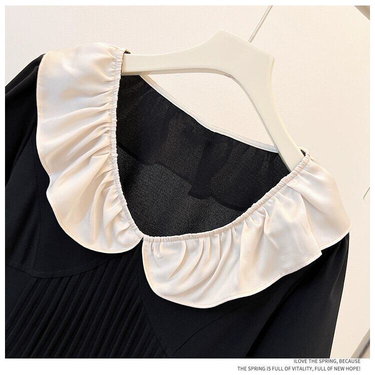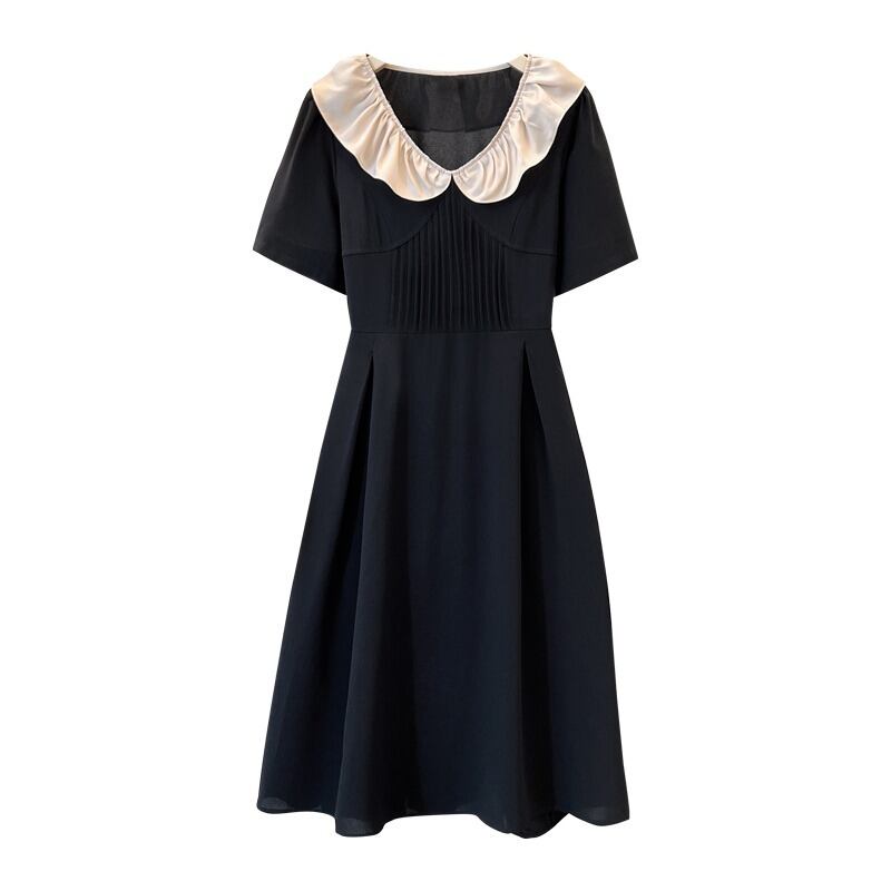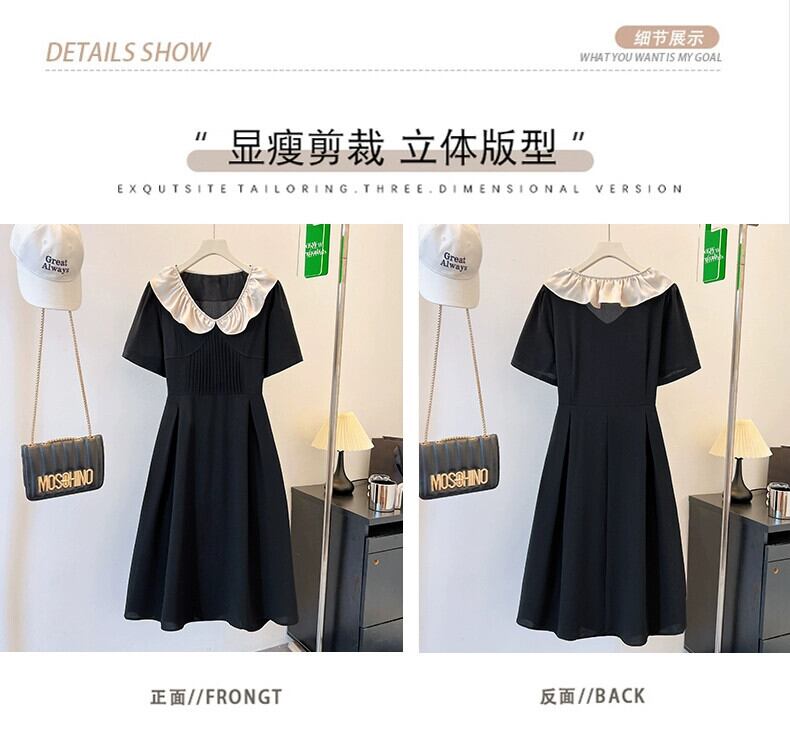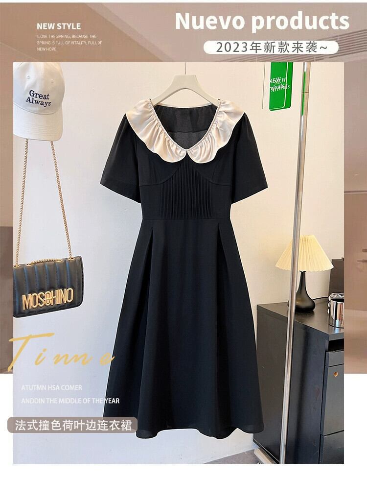 プラスサイズの婦人服 2023 夏服脂肪姉妹年齢削減レトロ人形襟 A ラインスカートニッチフレンチカジュアルドレス 大きめサイズ サマー 夏物 Aライン 8884157530259762