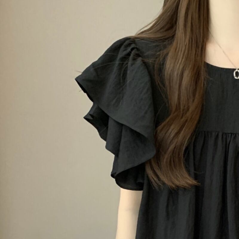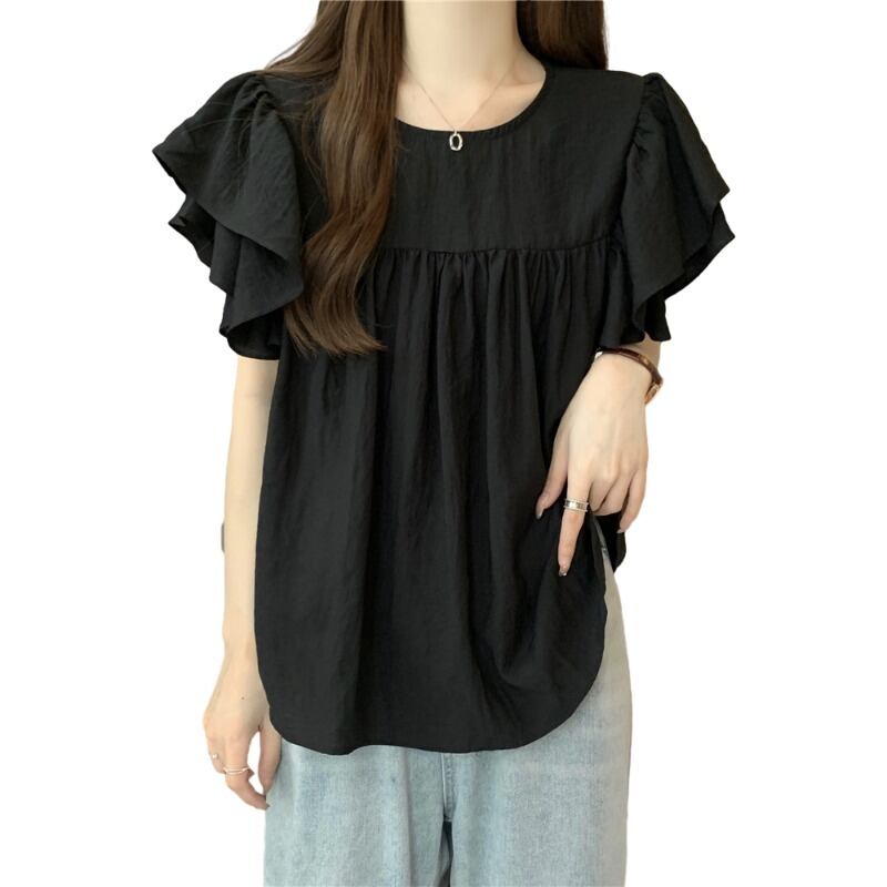 プラスサイズの婦人服 2023 夏服 フリルと薄手のシフォンシャツでお腹をカバーする太った姉妹 年齢を軽減するニッチカジュアルトップス ラッフル 大きめサイズ サマー 夏物 8884145377252068