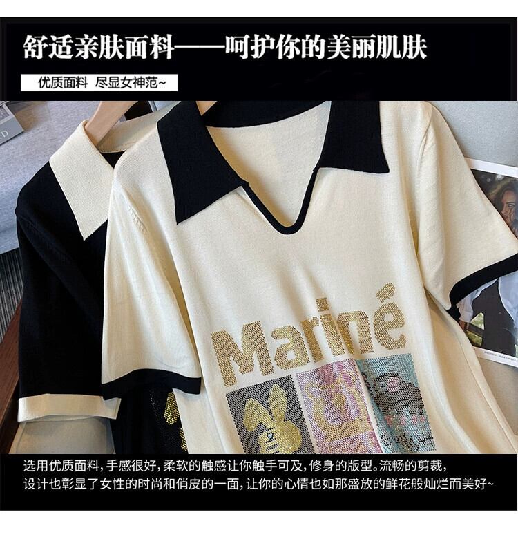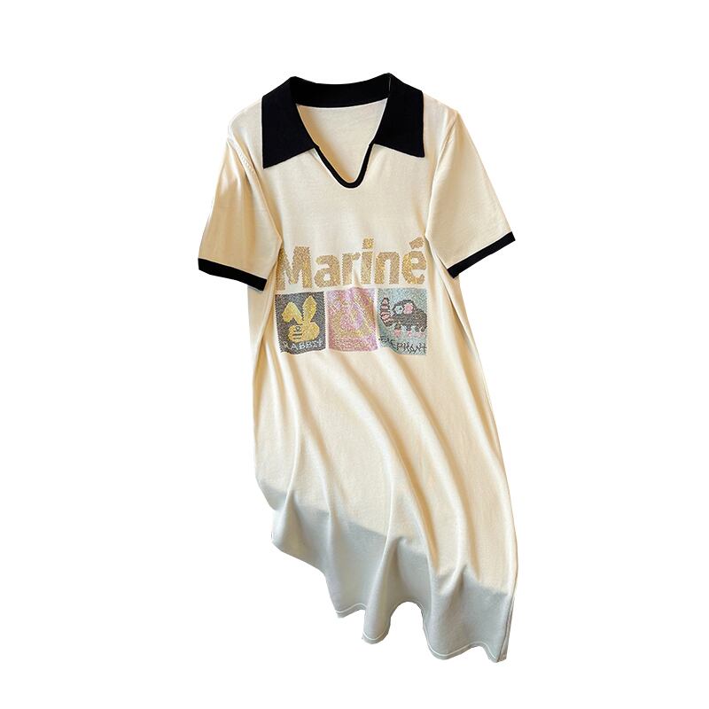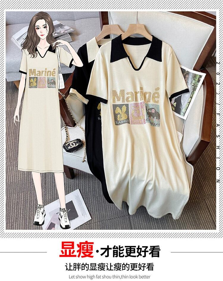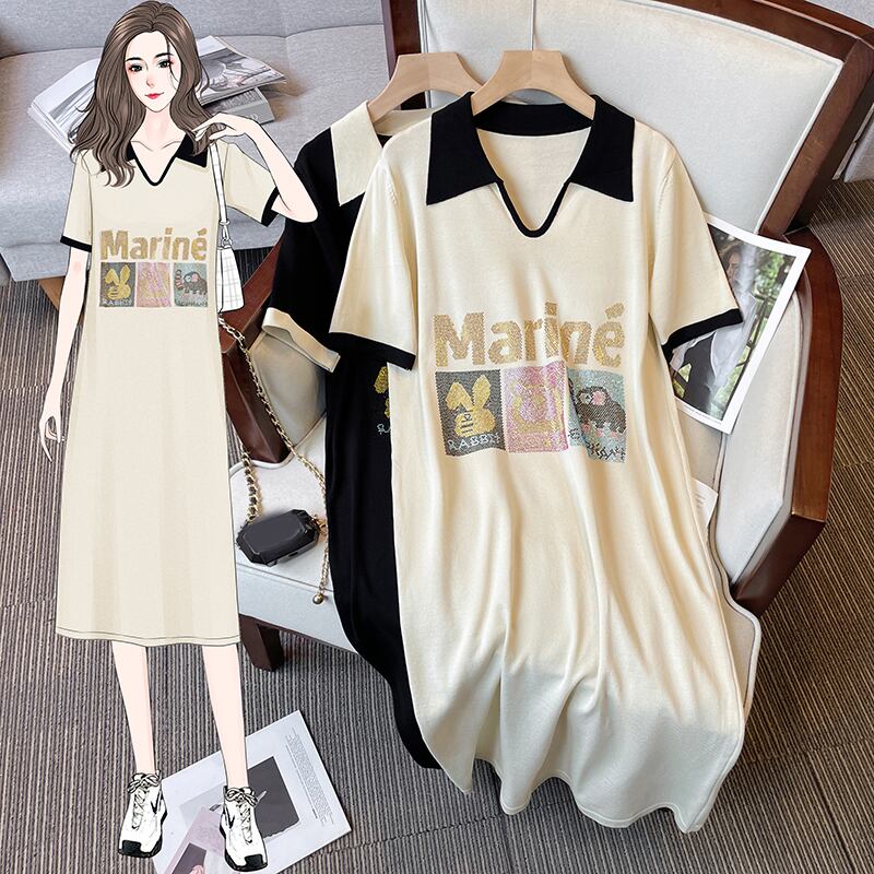 プラスサイズの婦人服 2023 夏脂肪姉妹に見える薄い緩い腹ポロカラーニットスカートファッション重工業ドレス 大きめサイズ サマー 夏物 8884118654071853