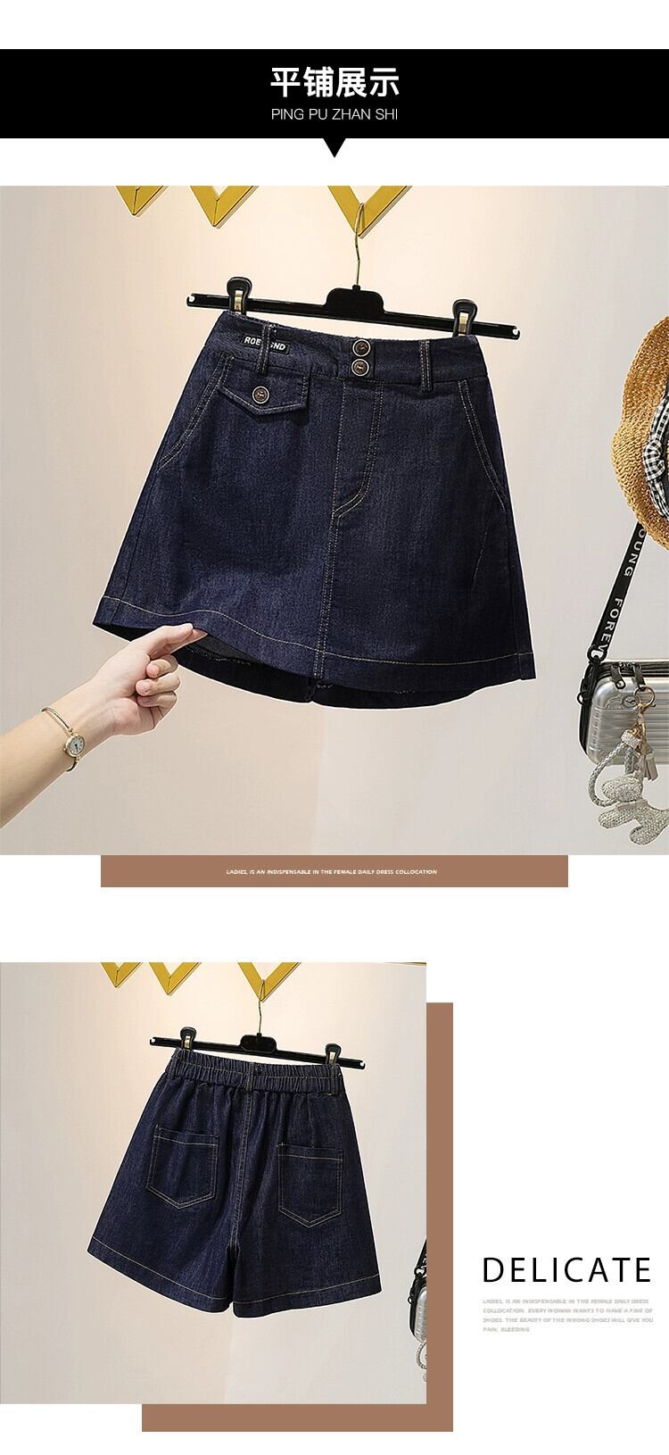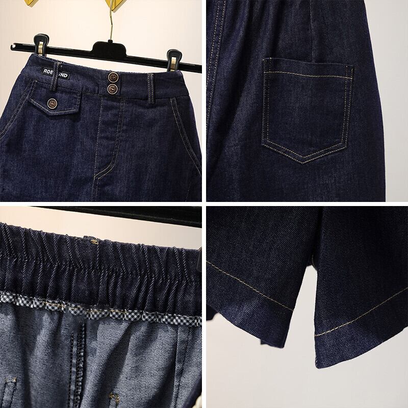 プラスサイズの婦人服 2023 ファットシスター夏の新ファッション年齢を軽減するオールマッチデニムスカートパンツカジュアル A ラインスカートパンツ 大きめサイズ サマー 夏物 Aライン 8884122897651006