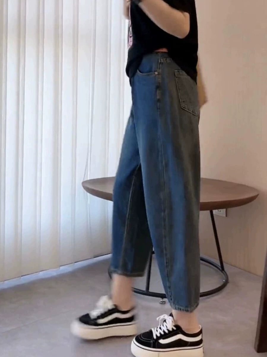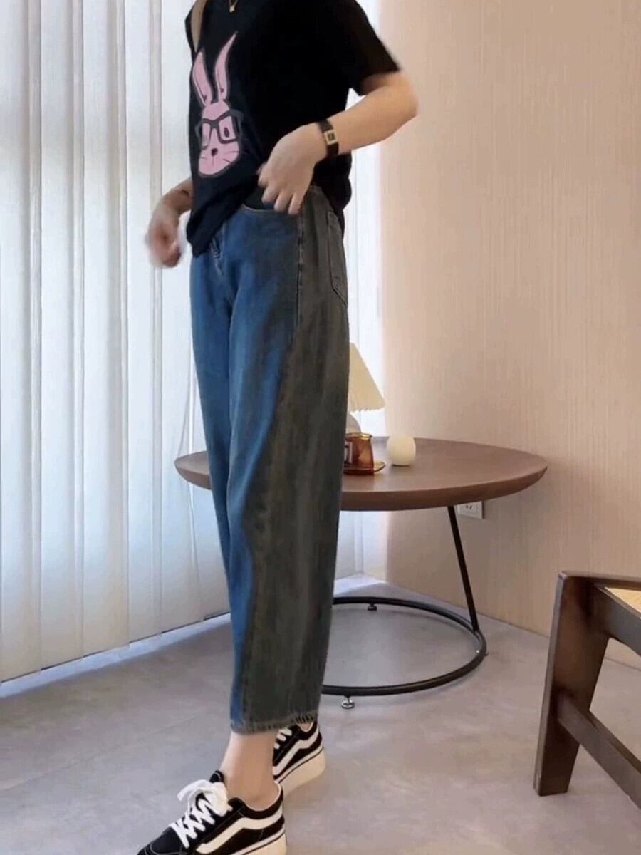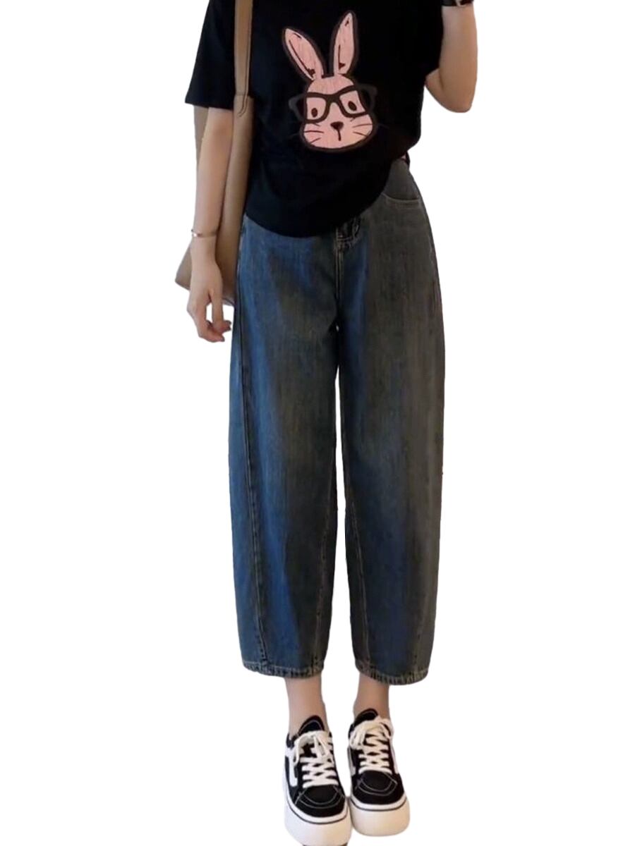 プラスサイズの婦人服 2023 ファットシスター夏の新しいファッションハイウエスト痩身ルーズ 8 ポイントバナナジーンズワイドレッグパンツ ハイウェスト 大きめサイズ サマー 夏物 8884112415199908