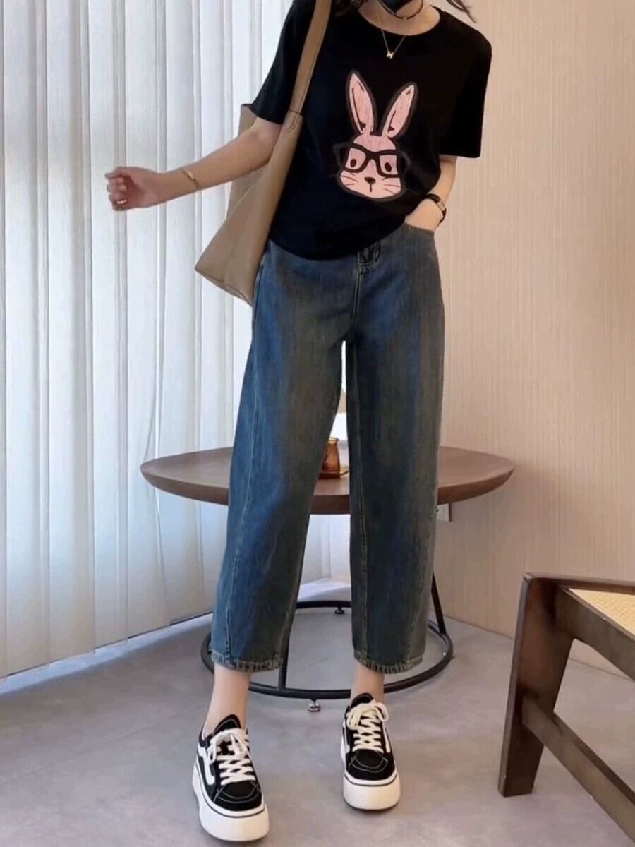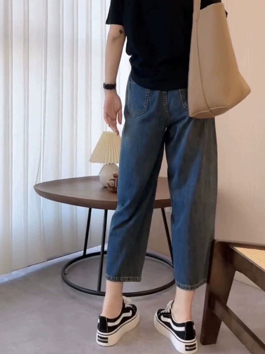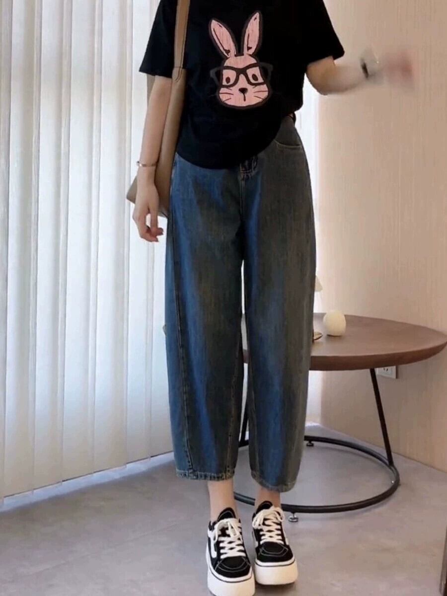 プラスサイズの婦人服 2023 ファットシスター夏の新しいファッションハイウエスト痩身ルーズ 8 ポイントバナナジーンズワイドレッグパンツ ハイウェスト 大きめサイズ サマー 夏物 8884112415199908